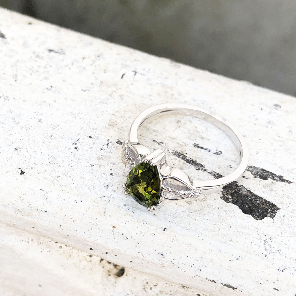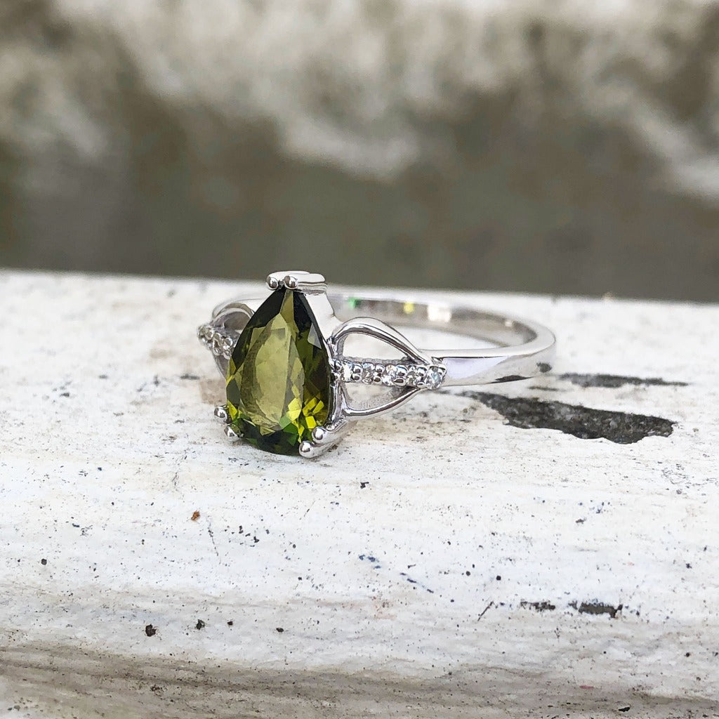 Pear Cut Green Tourmaline and Diamond Open Shoulder Ring