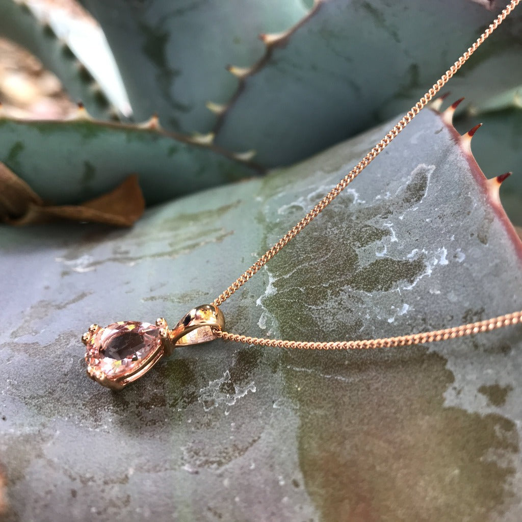 Pear Cut Morganite and Rose Gold Pendant and Chain