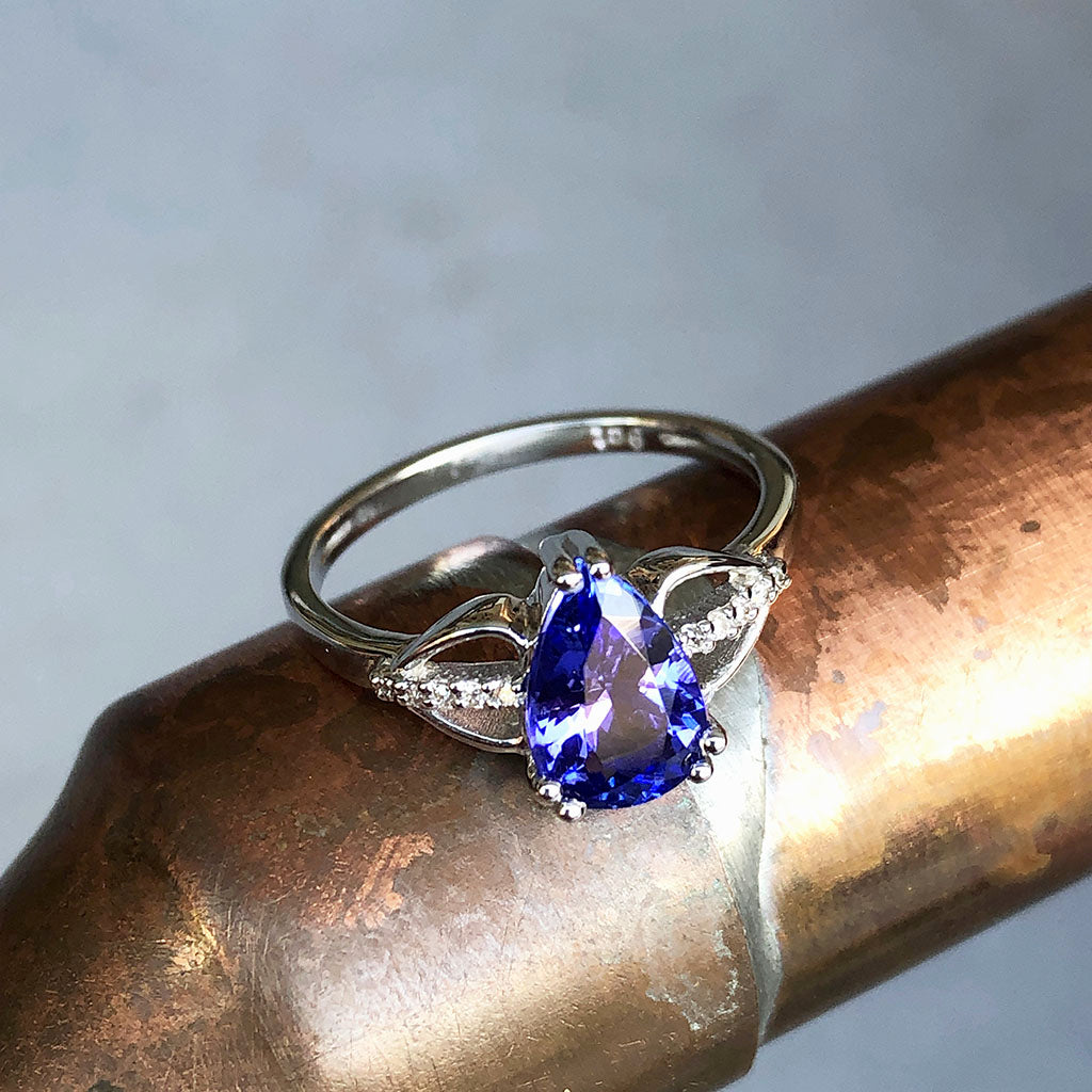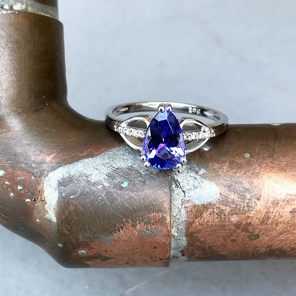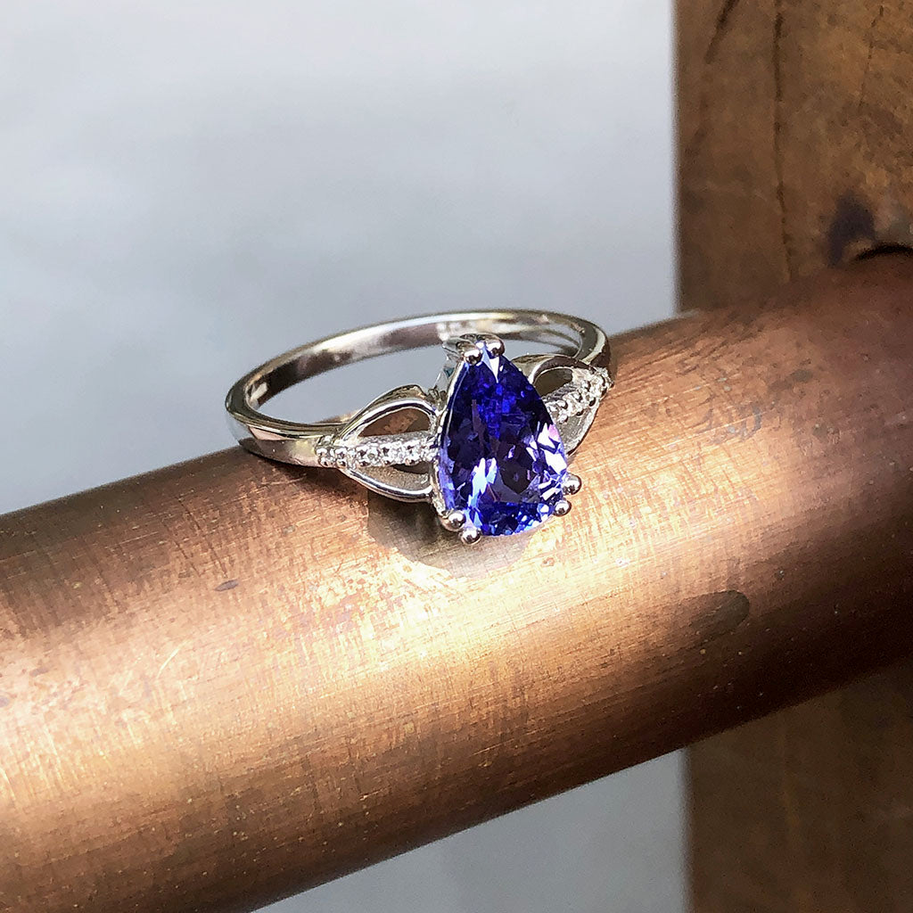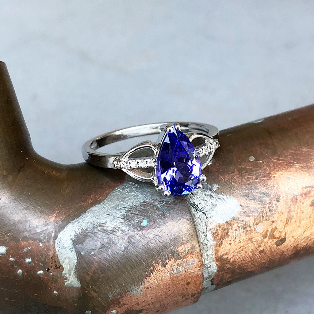 Pear Cut Tanzanite and Diamond Open Shoulder Ring