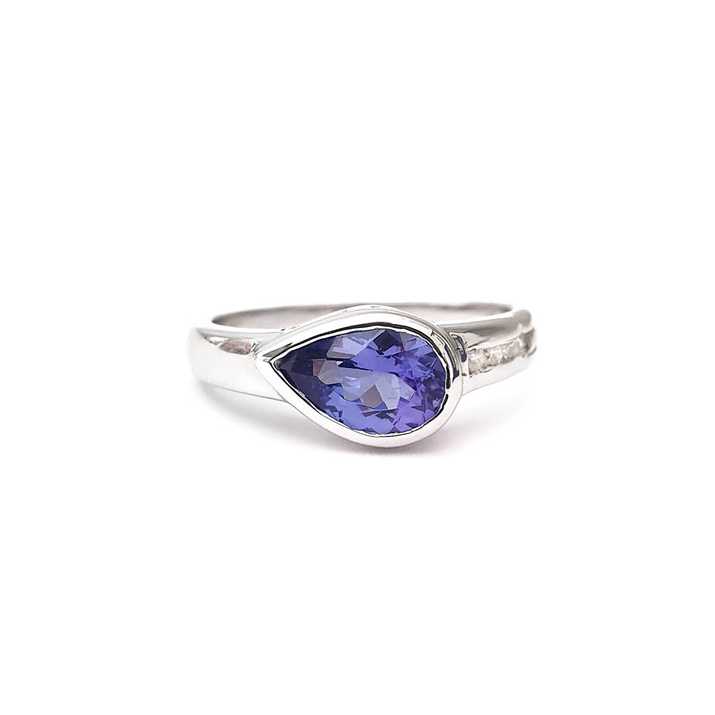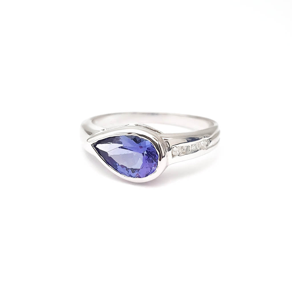 Pear Cut Tanzanite with Diamond Pavé Band Accent Ring