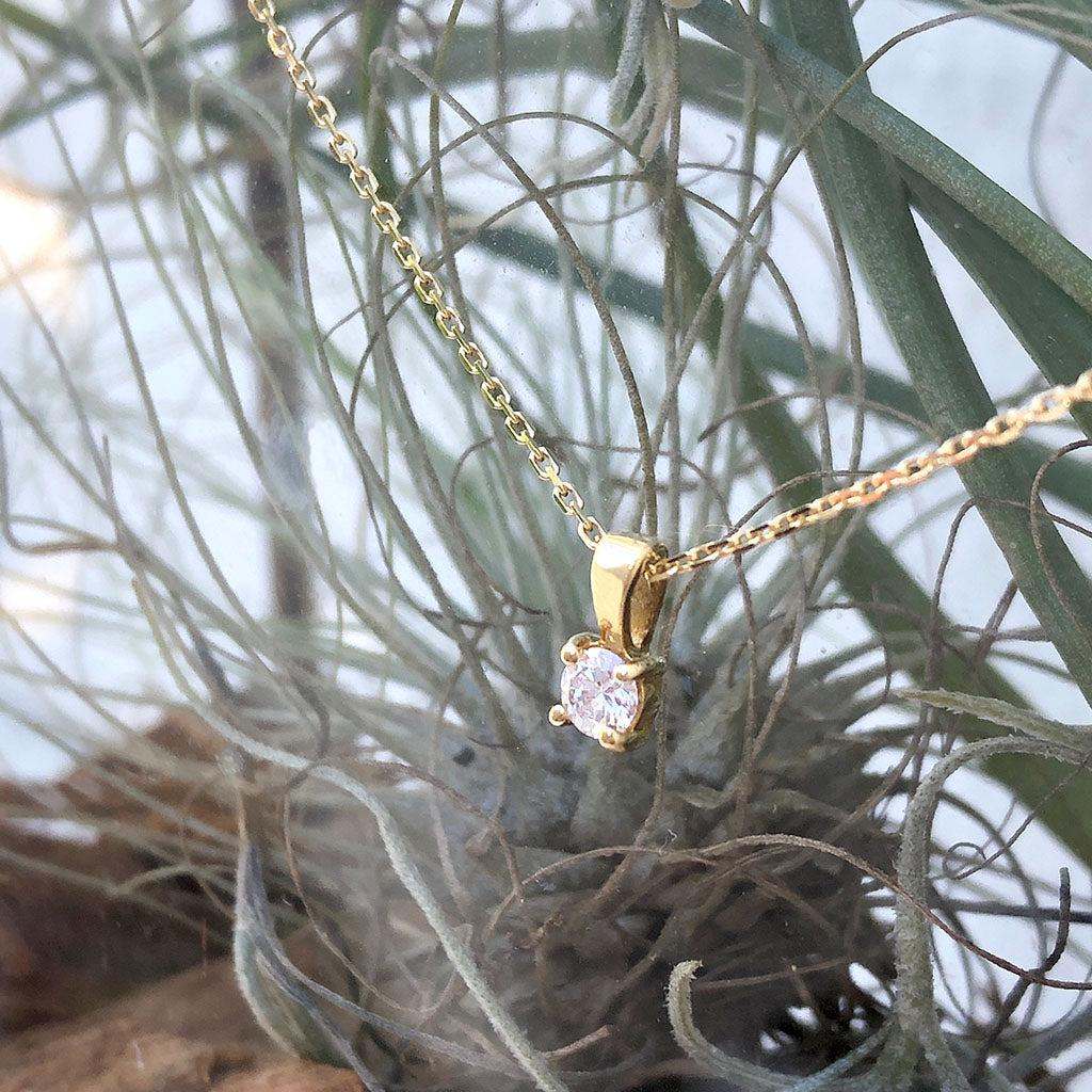 Petite Yellow Gold 4 Claw Diamond Pendant
