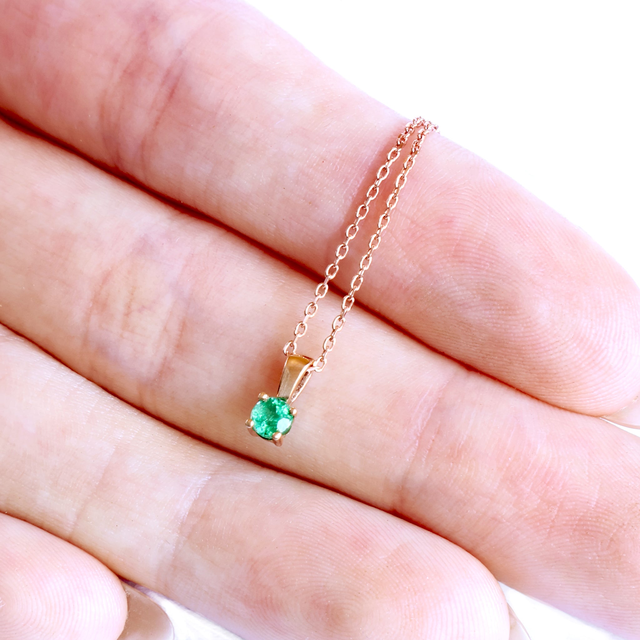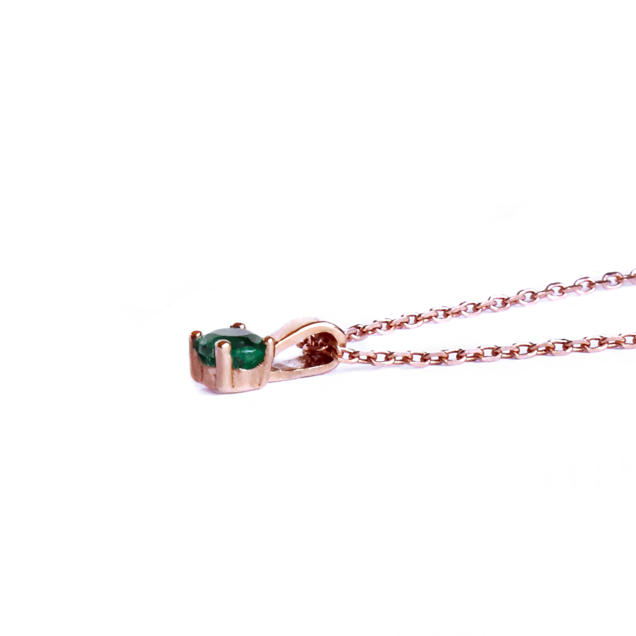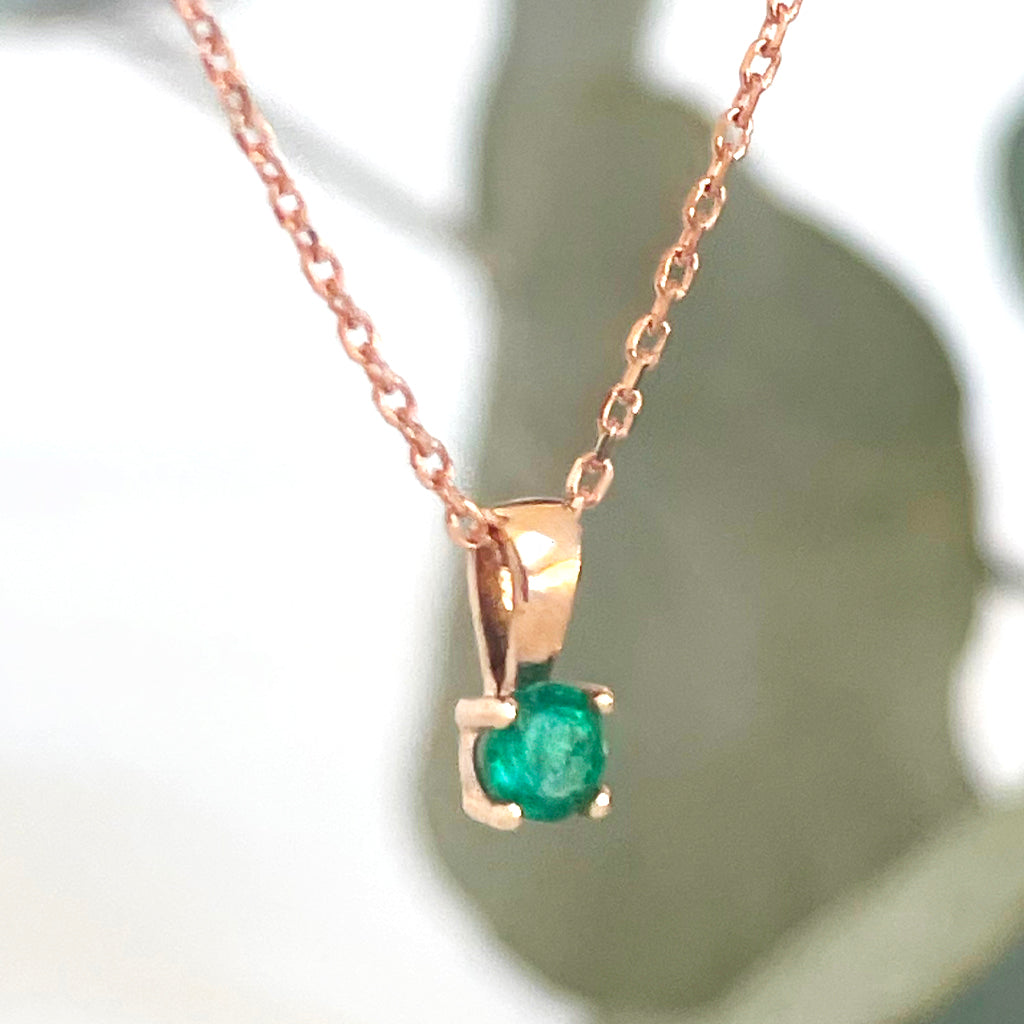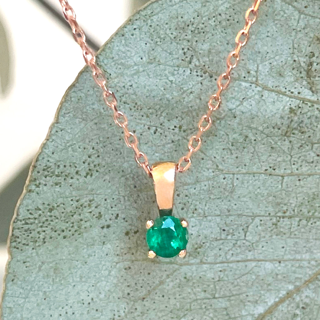 Petite 4 Claw Rose Gold Emerald Pendant