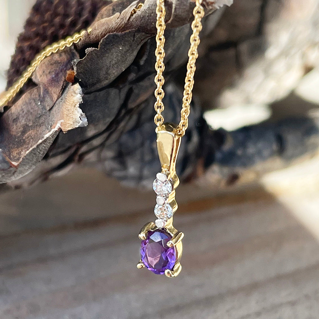 Petite Double Diamond and Amethyst Yellow Gold Pendant