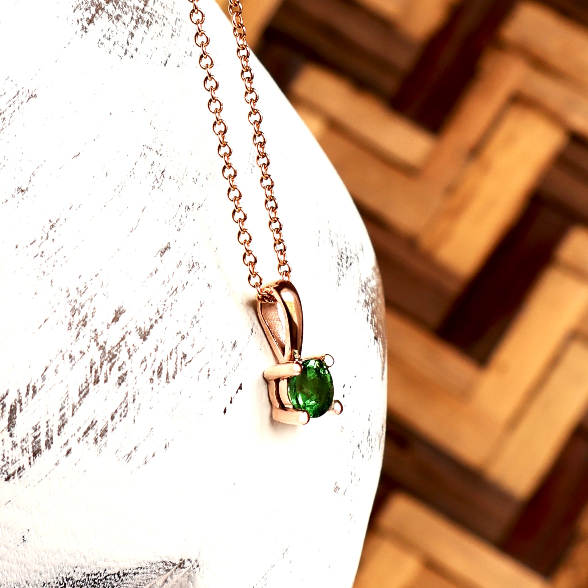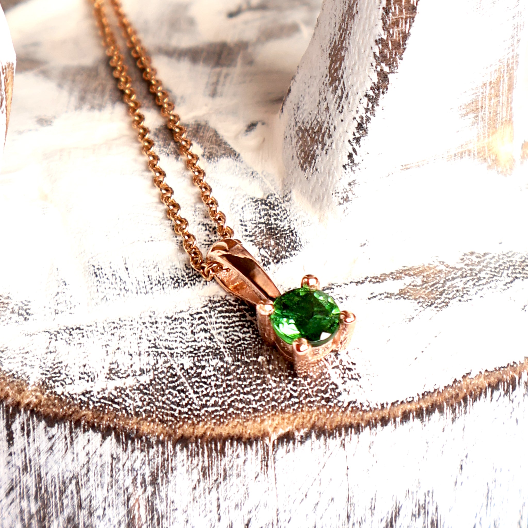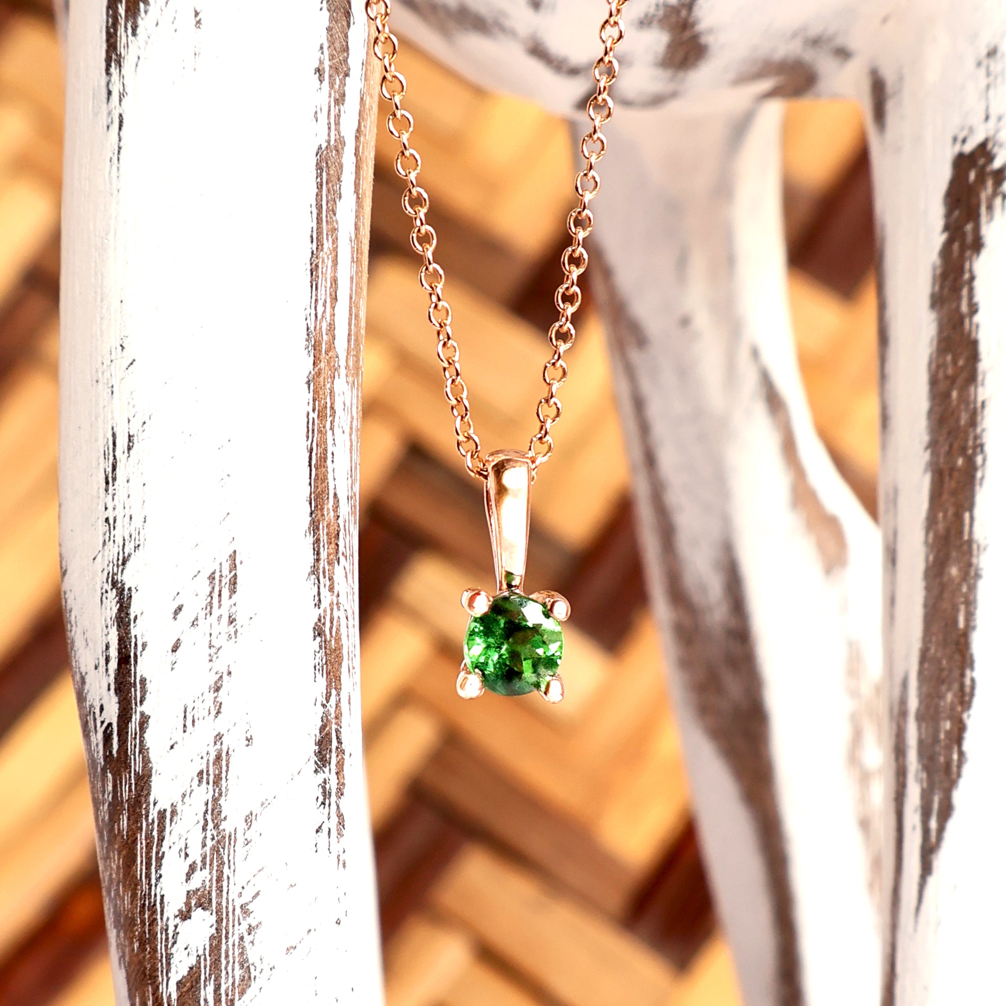Petite Fixed Bale Round Cut Tsavorite Rose Gold Pendant