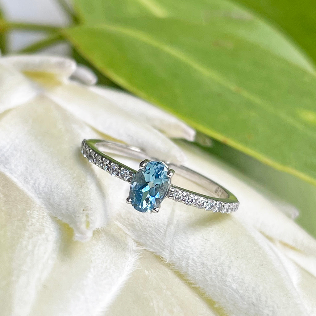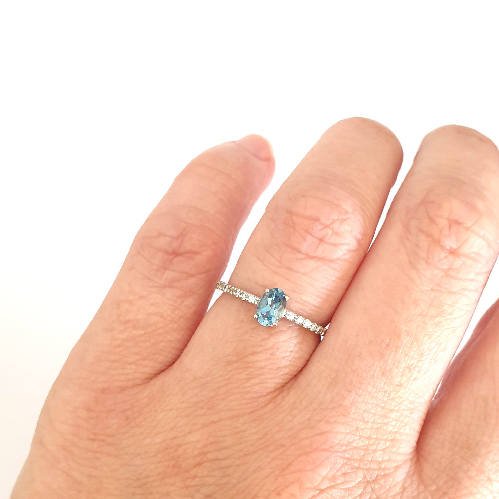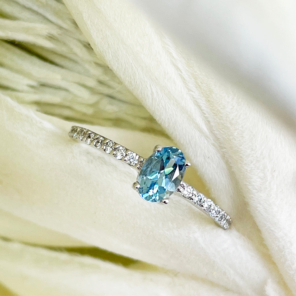 Petite Aquamarine with White Diamond Band Ring
