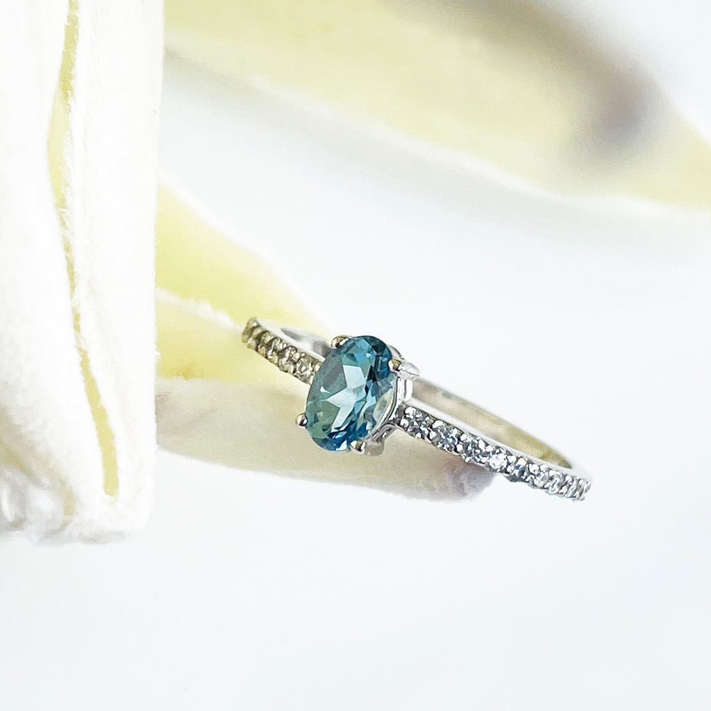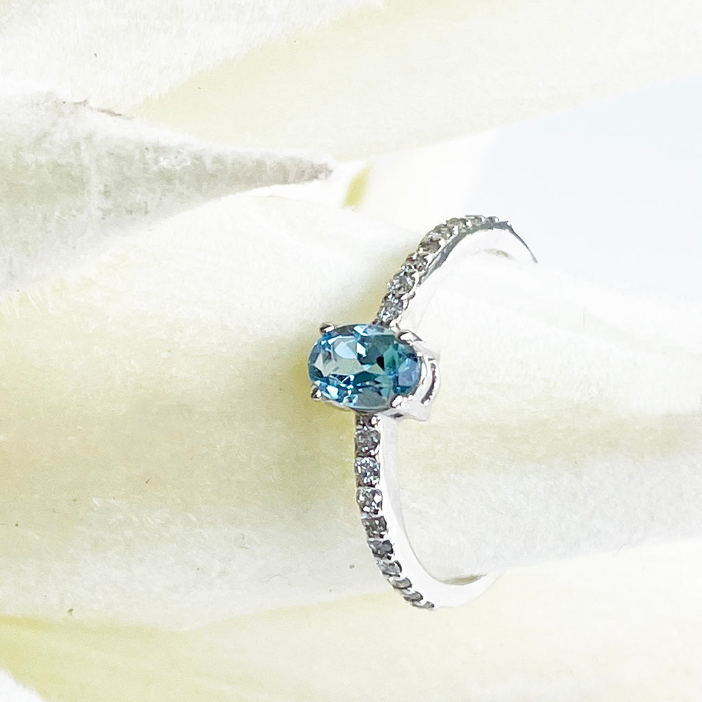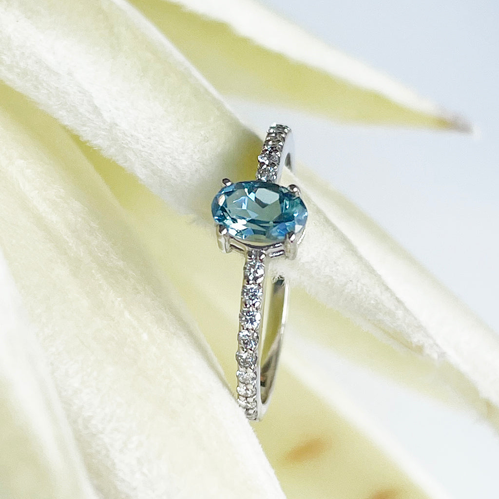 Petite Aquamarine with White Diamond Band Ring