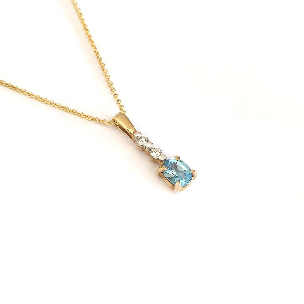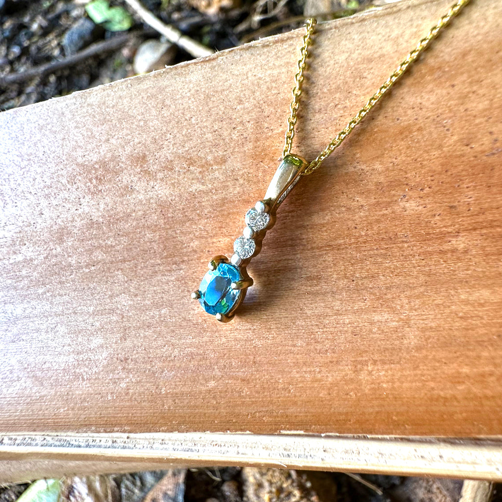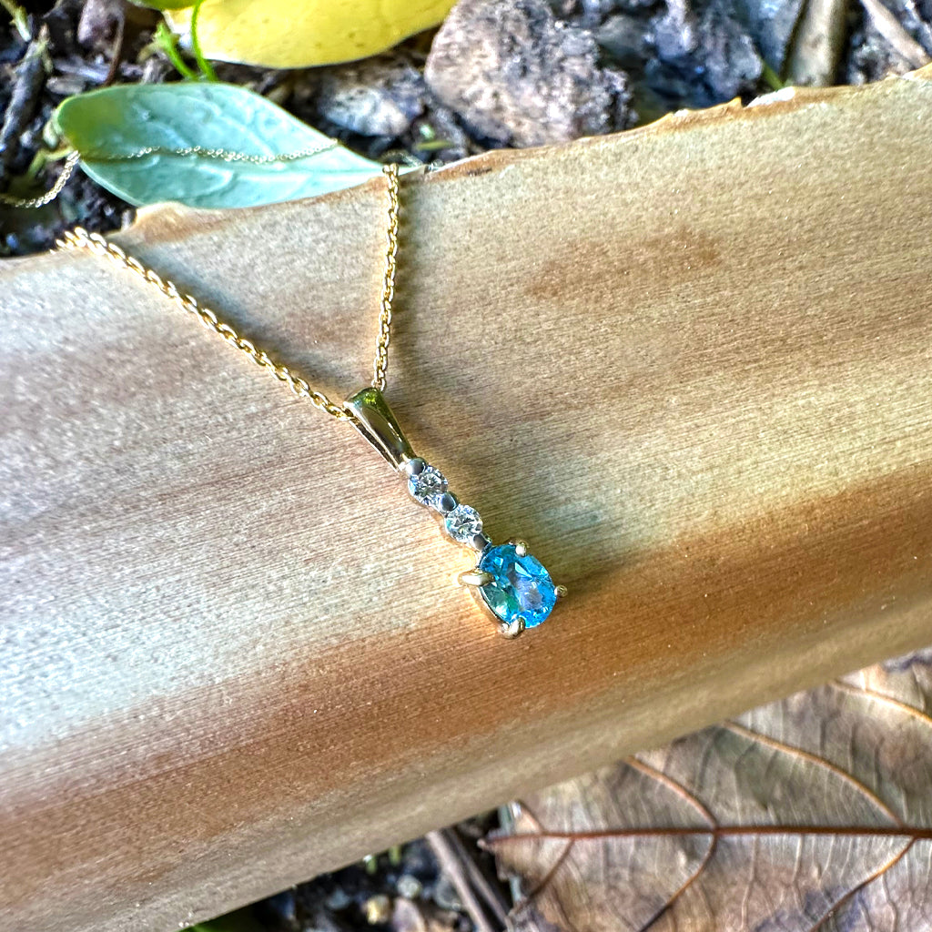 Petite Oval Cut Blue Topaz and Diamond Pendant