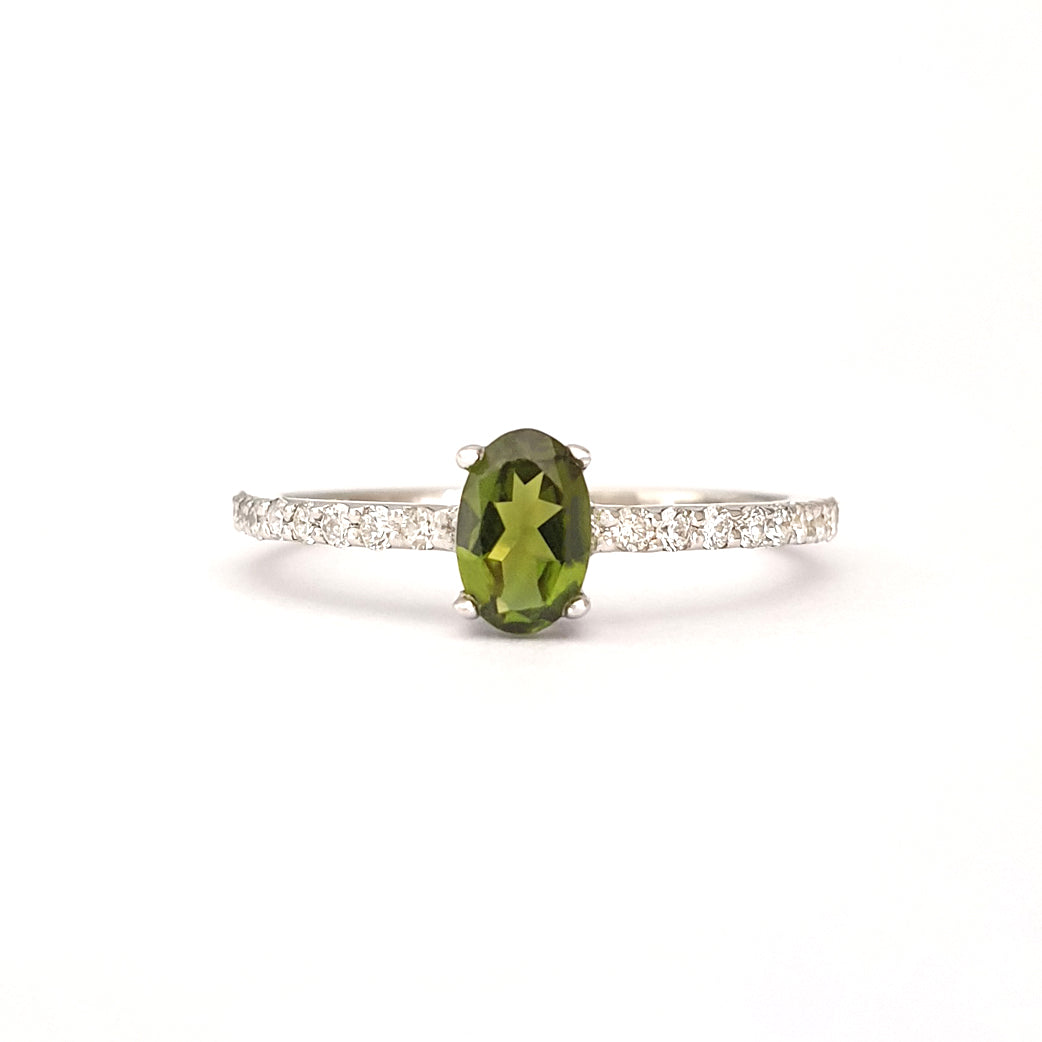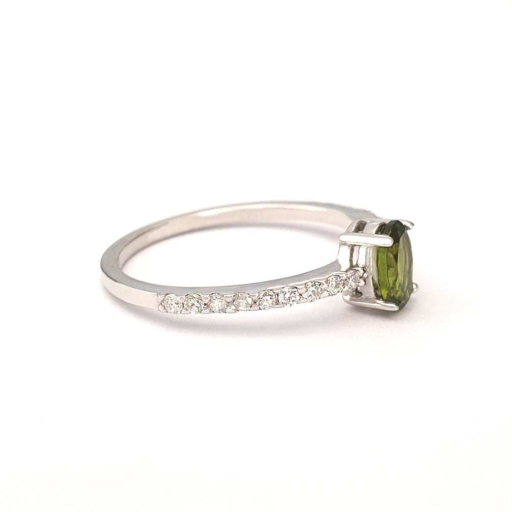 Petite Oval Green Tourmaline and Diamond White Gold Ring