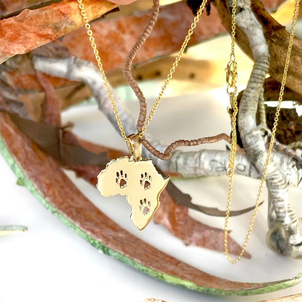 Petite Paw Print Yellow Gold Africa Map Pendant