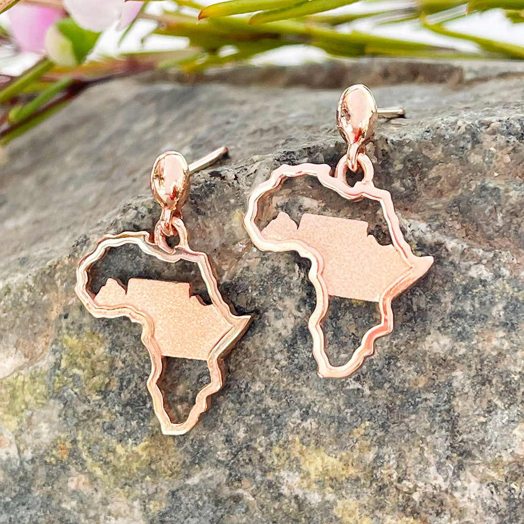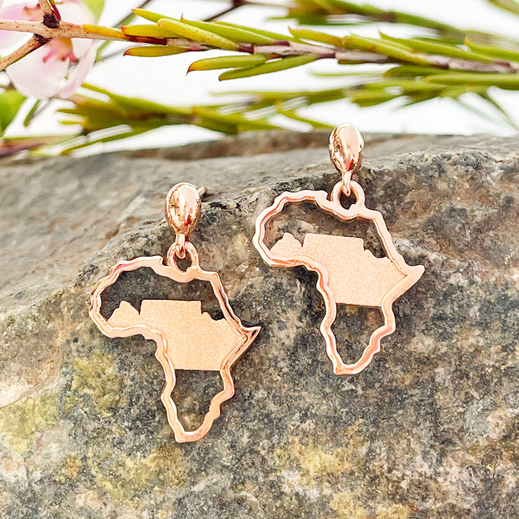 Petite Rose Gold Matt Table Mountain In Africa Outline Earrings