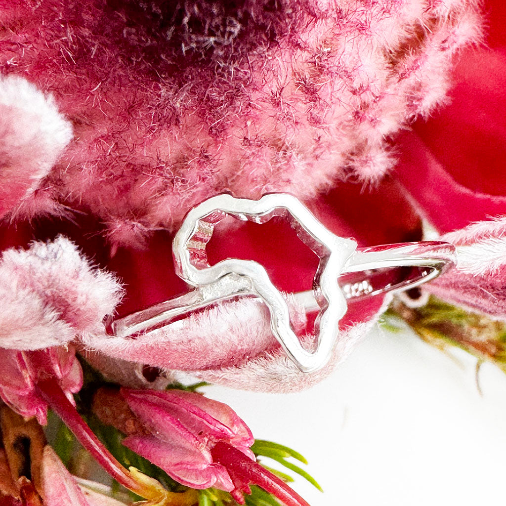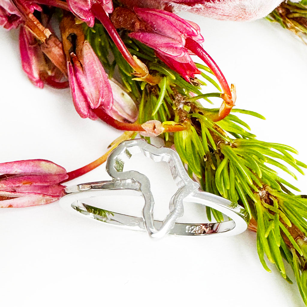 Petite Silver Africa Map Outline Ring