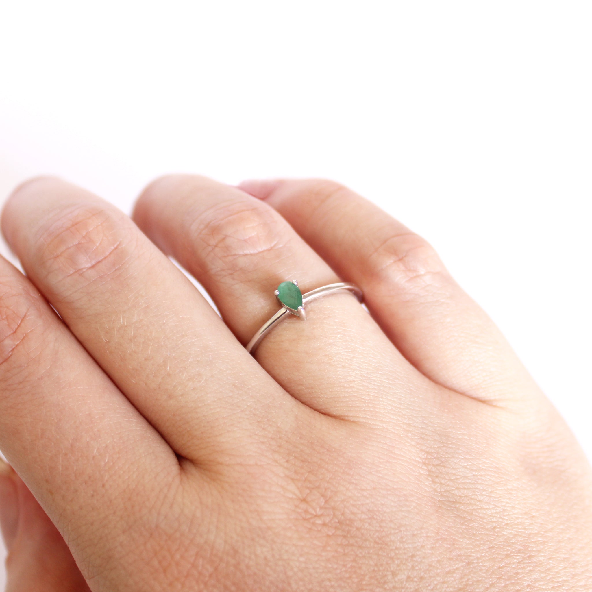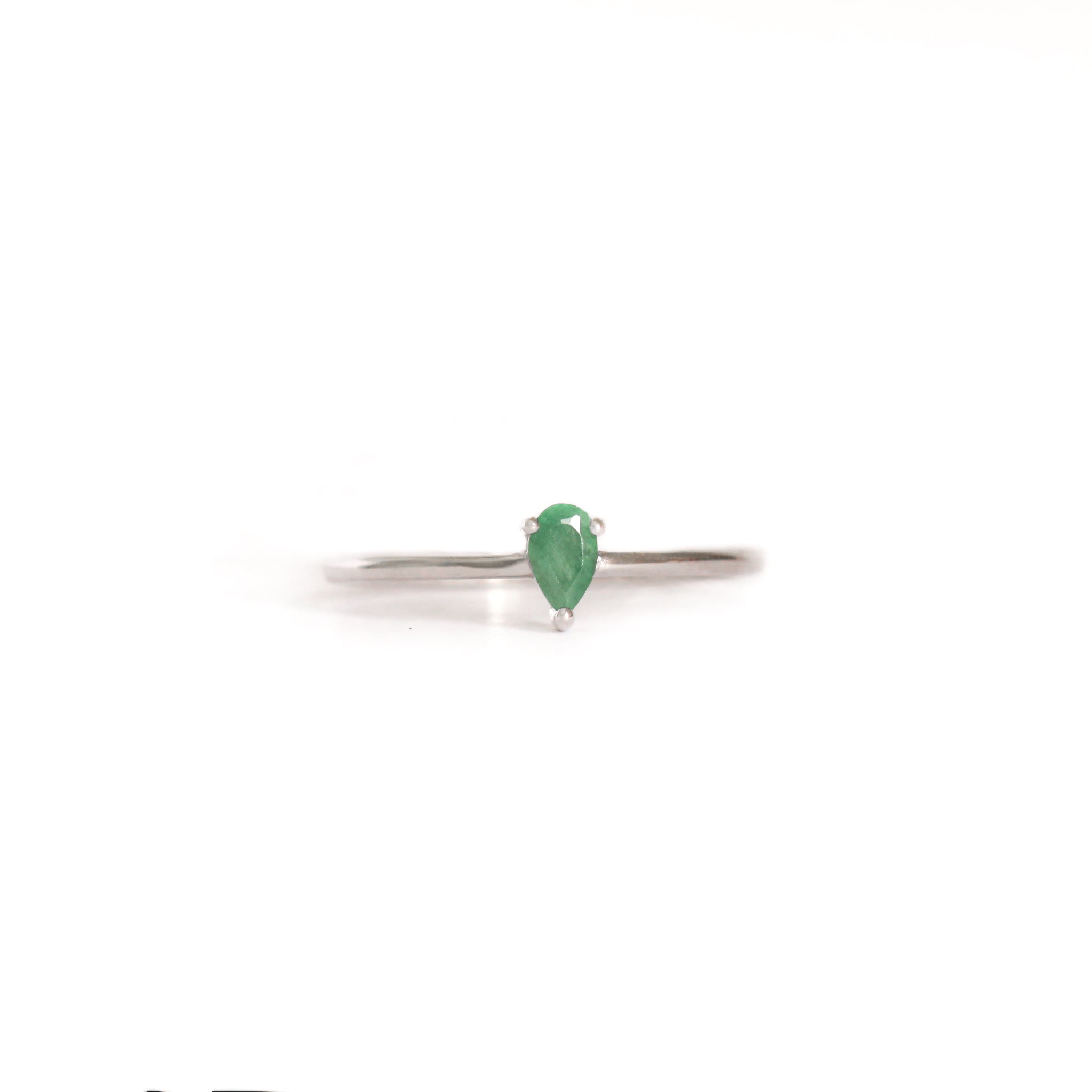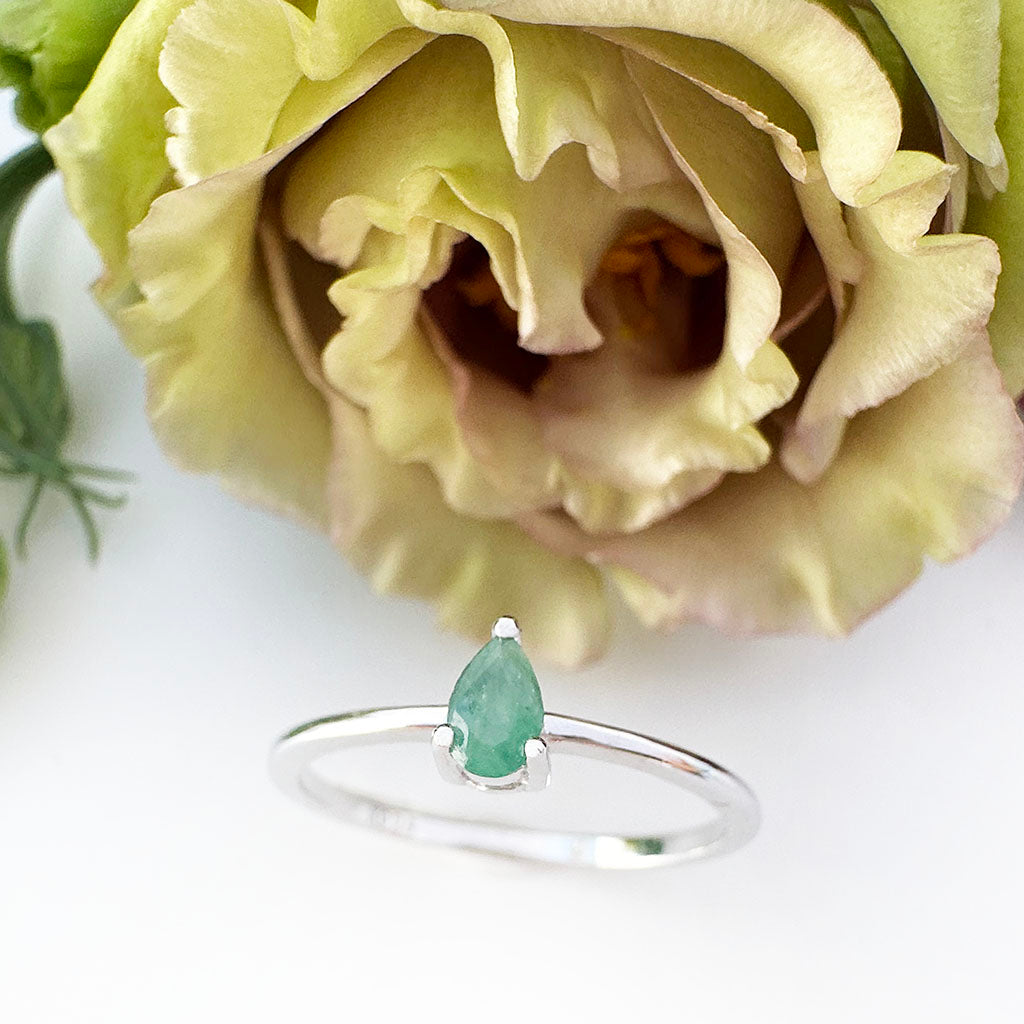 Petite Silver Thin Pear Cut Emerald Ring