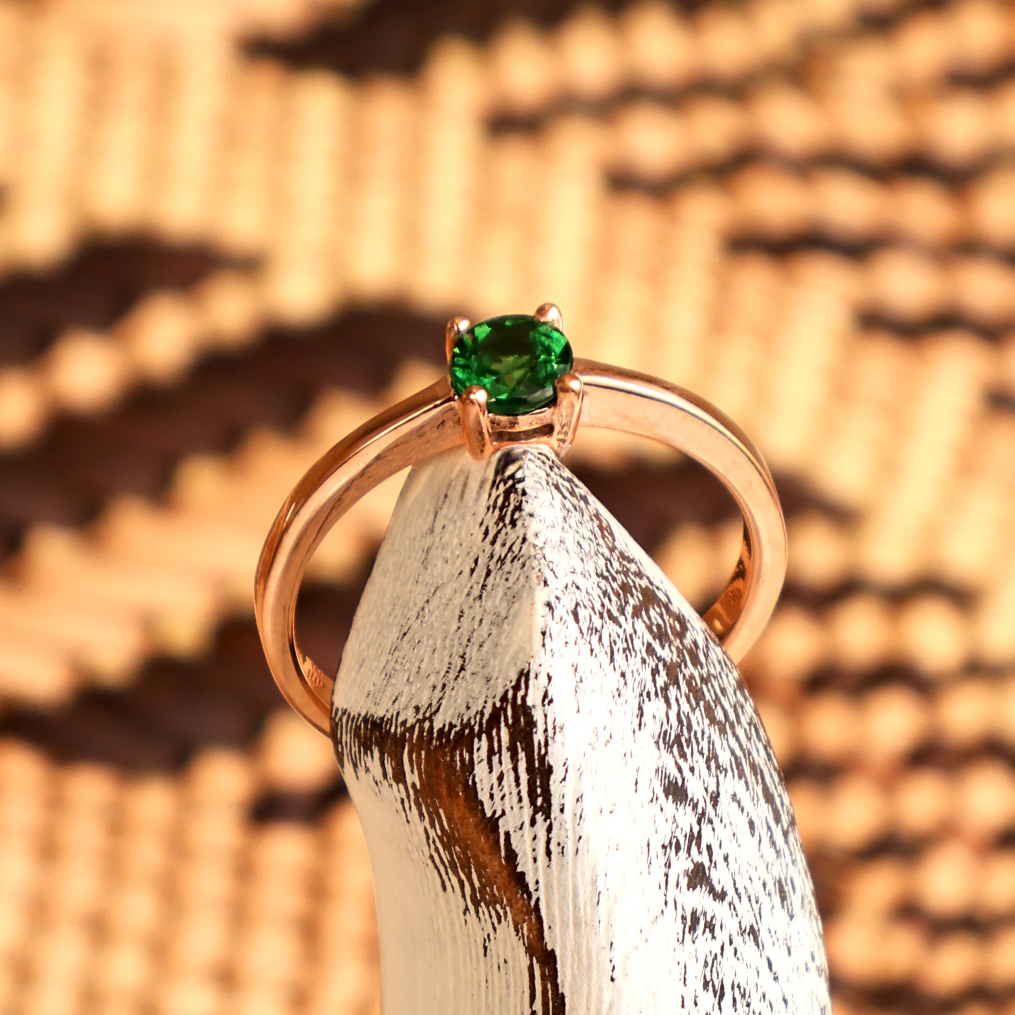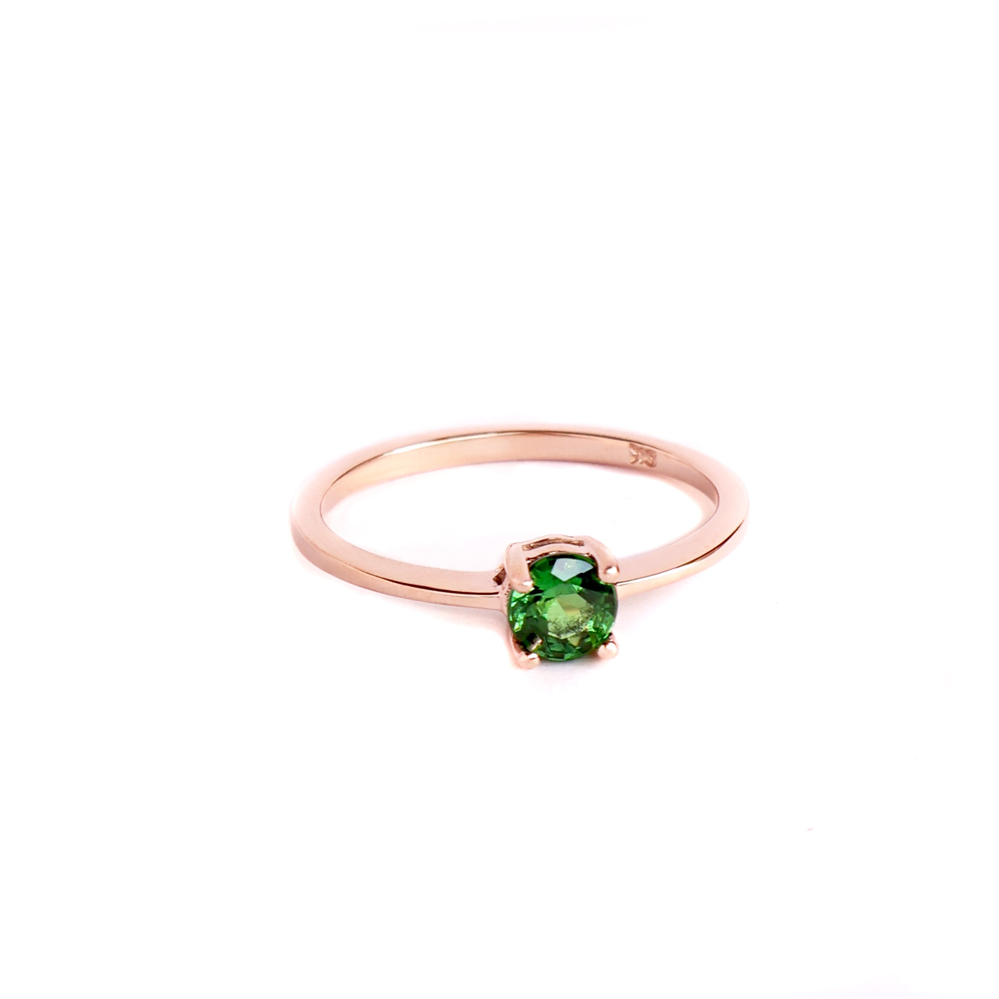 Petite Solitaire Four Claw Round Cut Tsavorite Rose Gold Ring