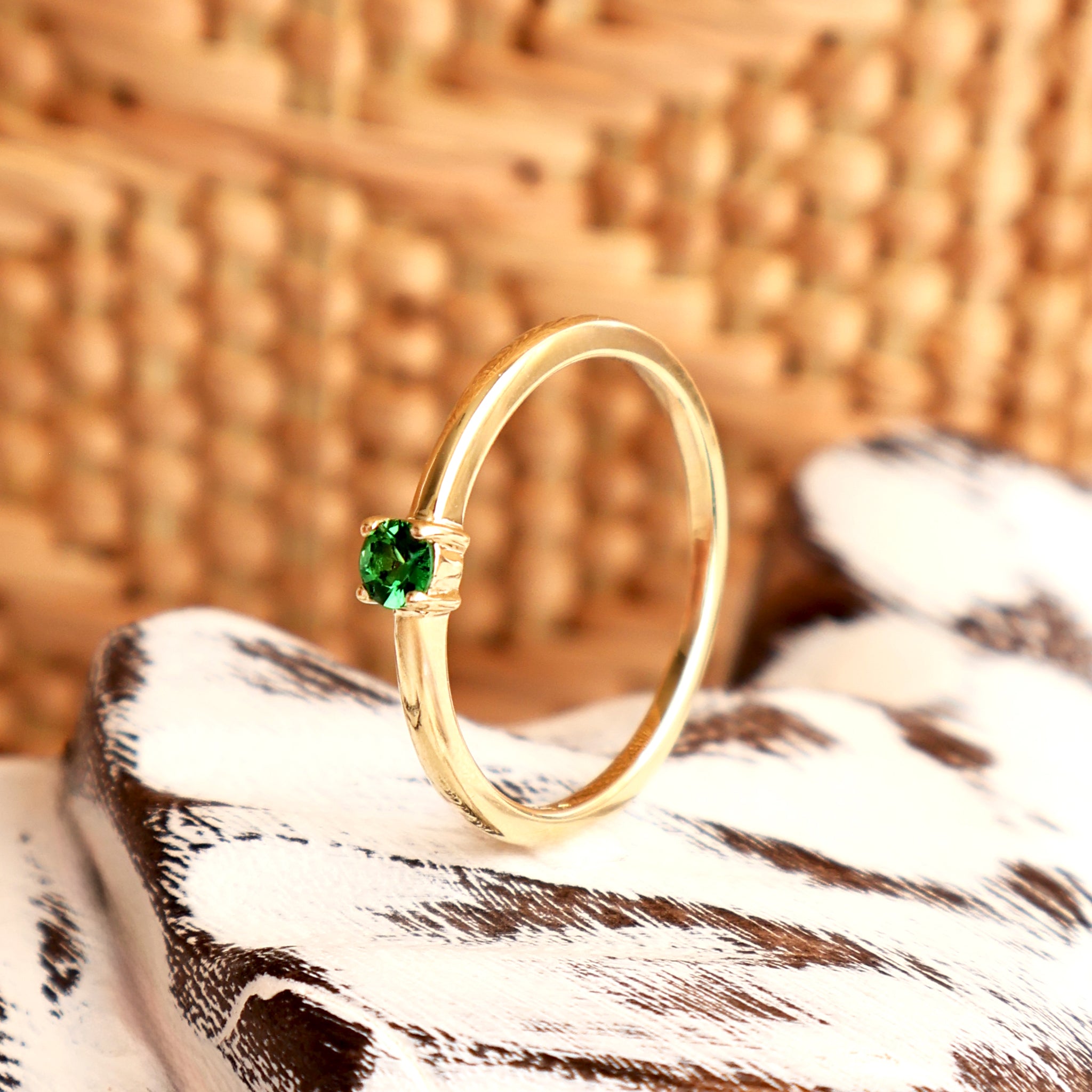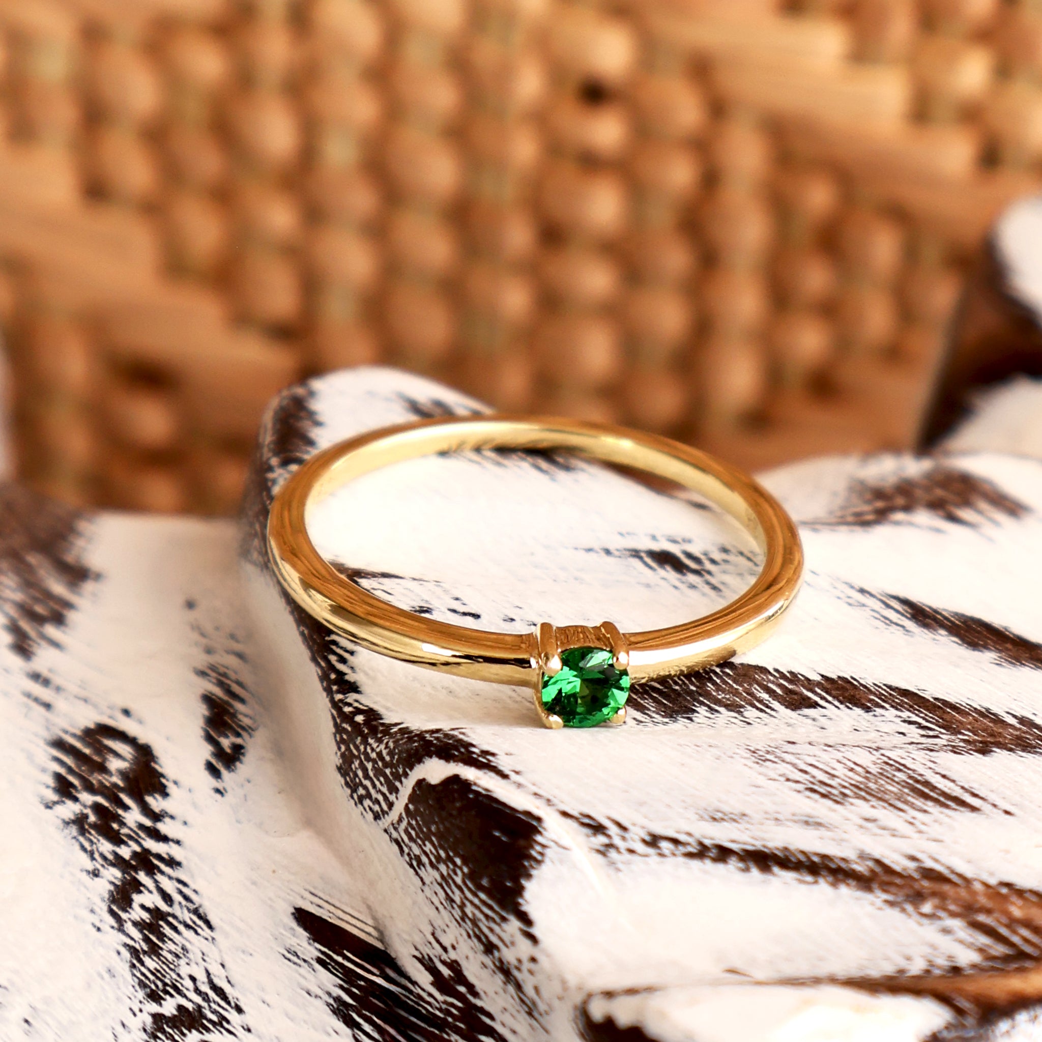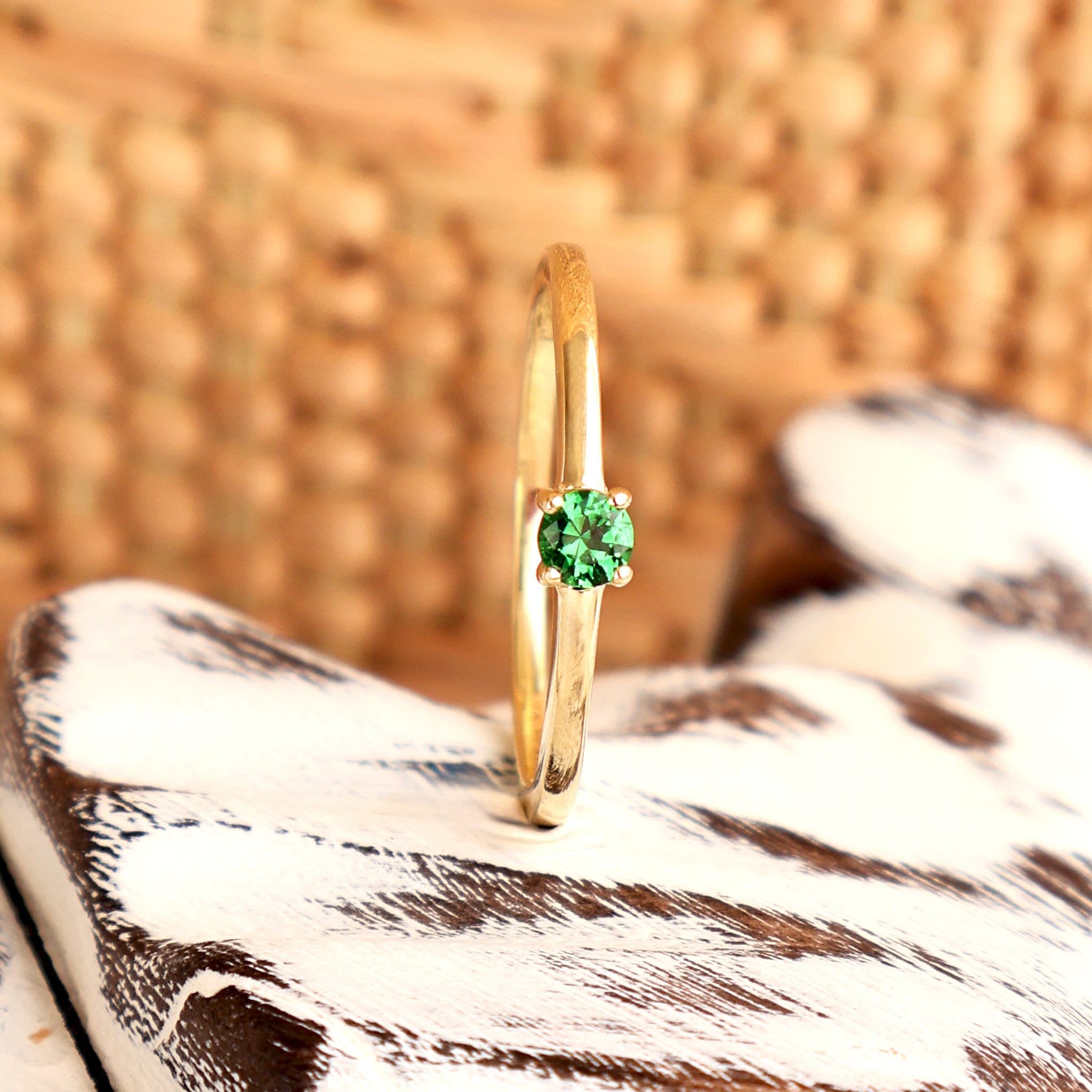 Petite Solitaire Four Claw Tsavorite Yellow Gold Ring