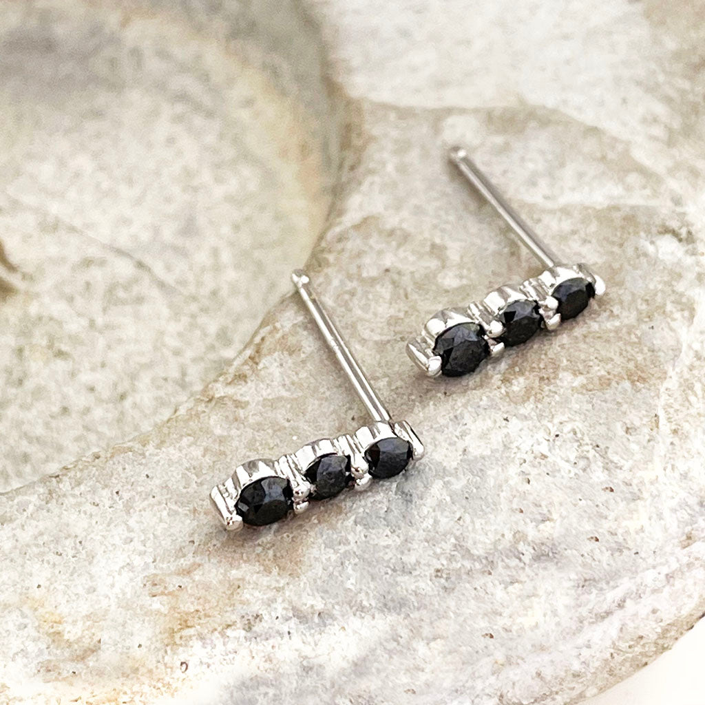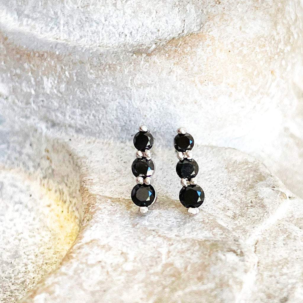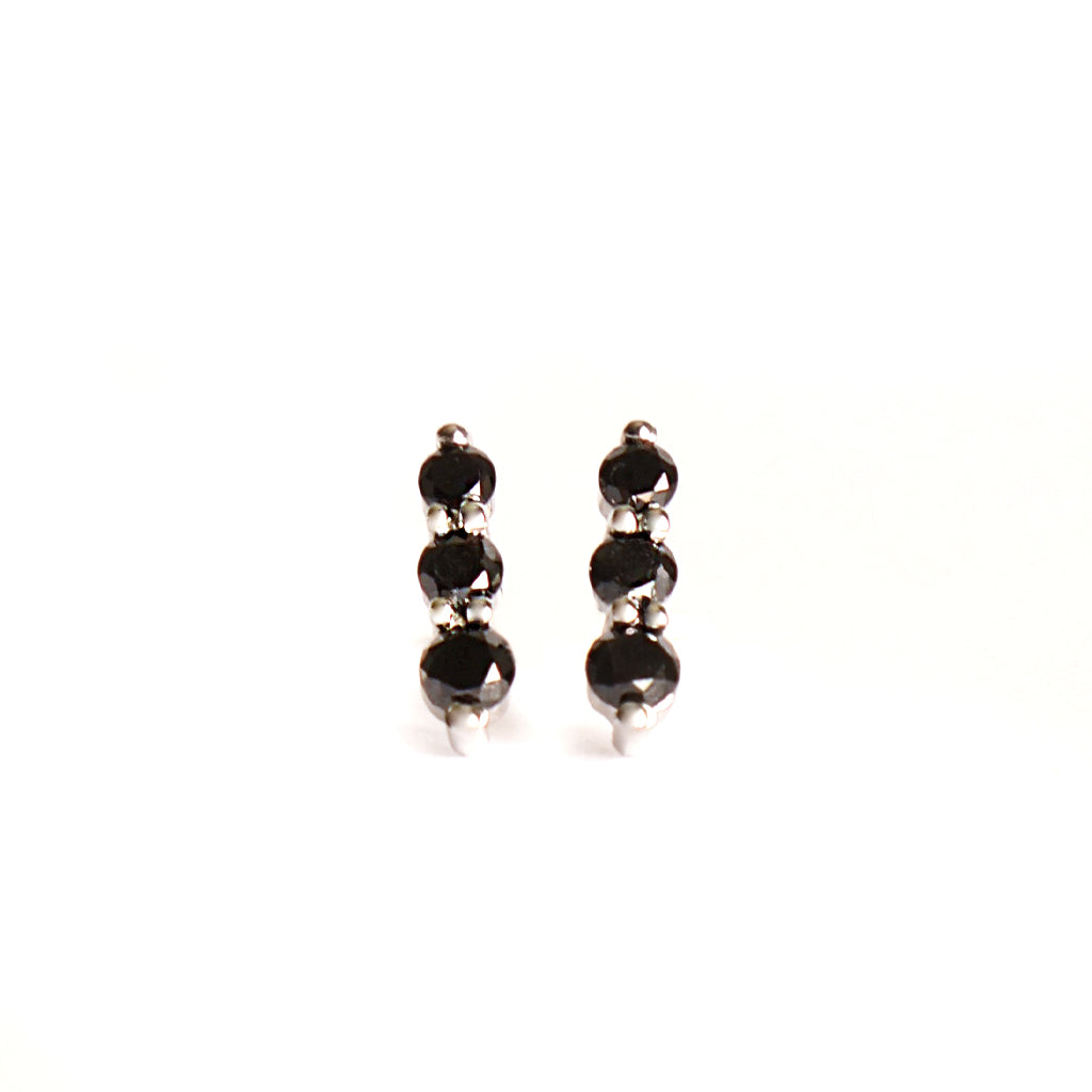 Petite Three Black Diamond Drop White Gold Stud Earrings