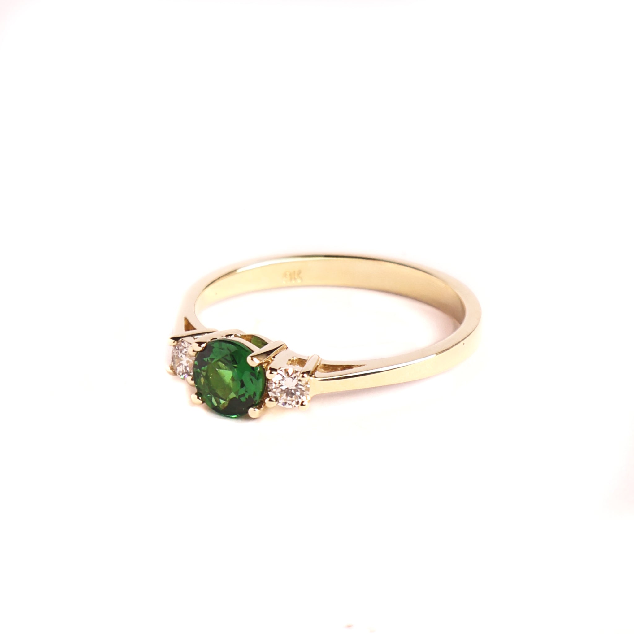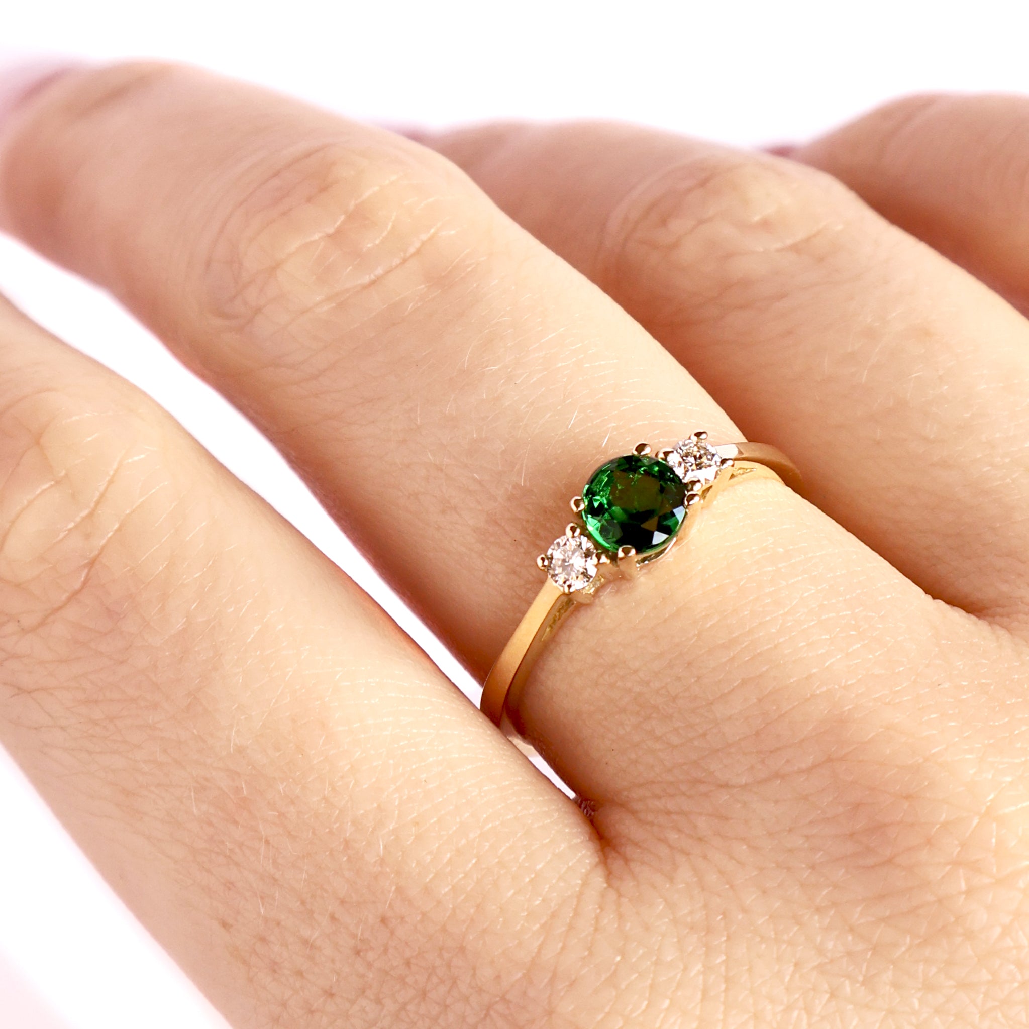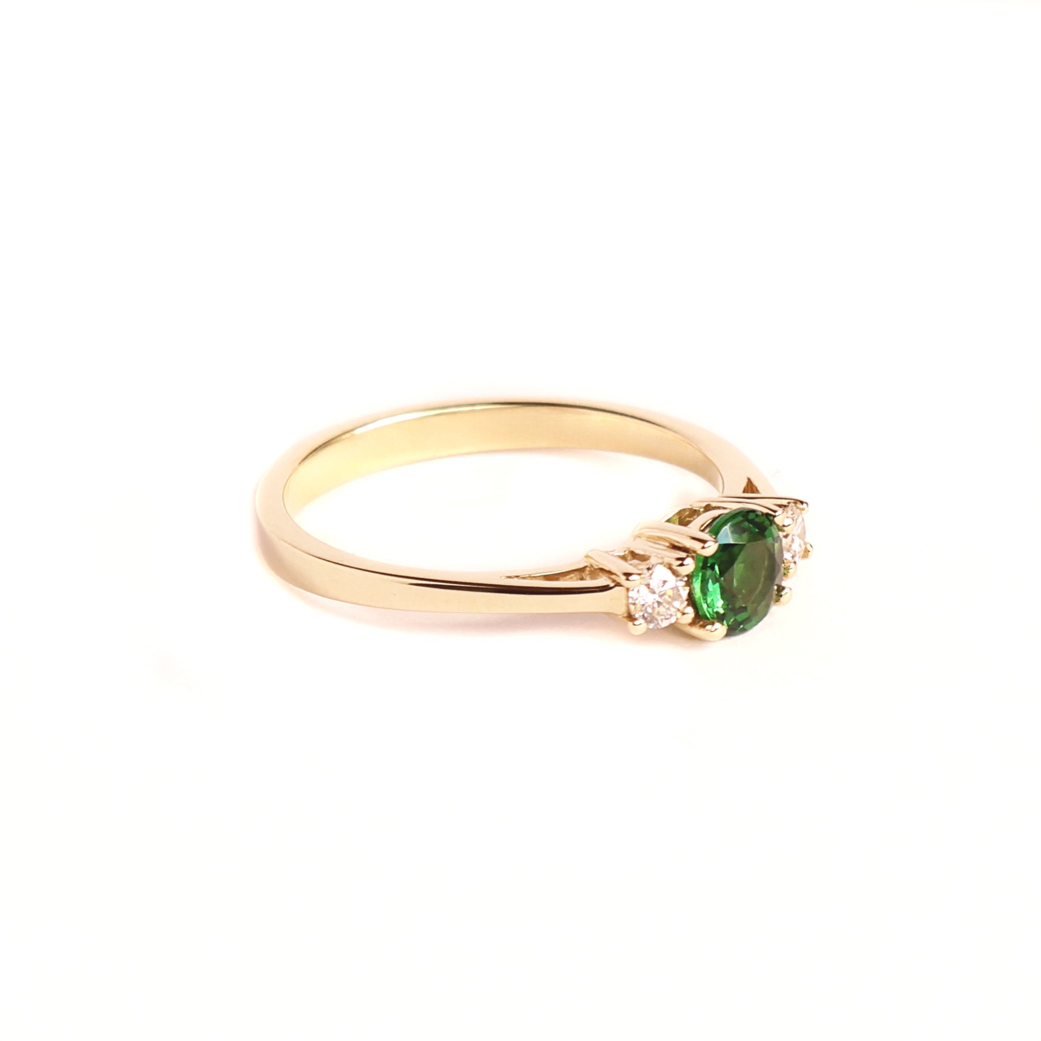 Petite Tsavorite And Diamond Trilogy Yellow Gold Ring