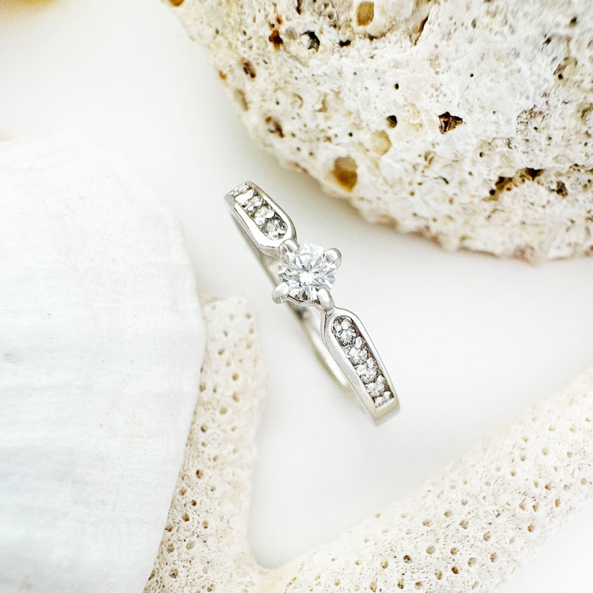 Centre Stone: White diamonds; weight: 0.23ct (combined); cut:round; colour: G/H; clarity: SI