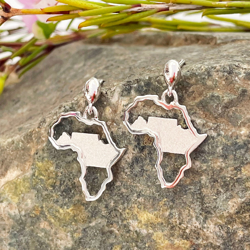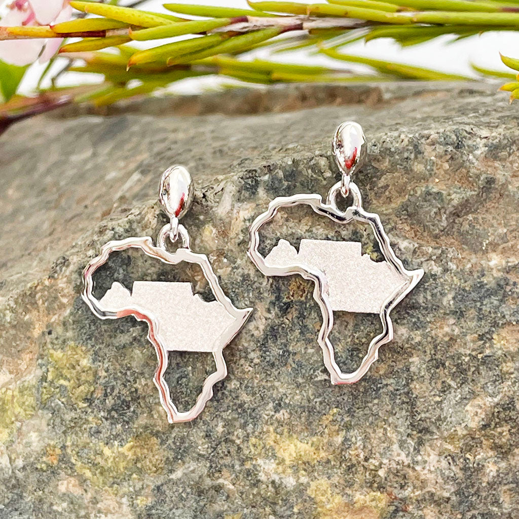 Petite White Gold Matt Table Mountain In Africa Outline Earrings
