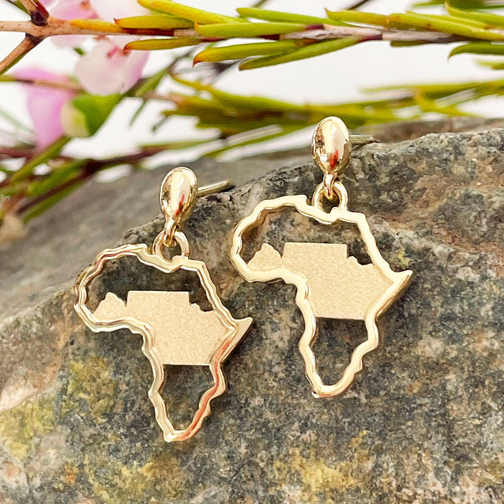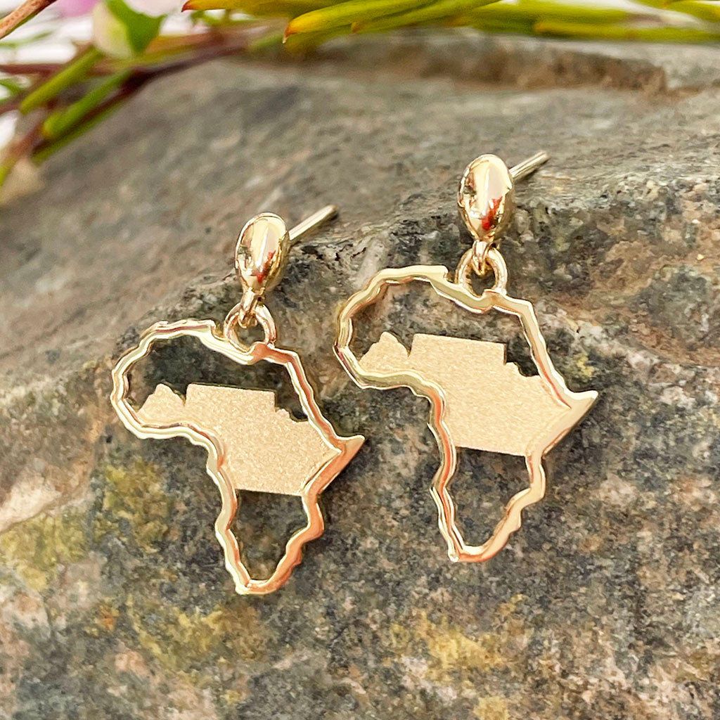 Petite Yellow Gold Matt Table Mountain In Africa Outline Earrings
