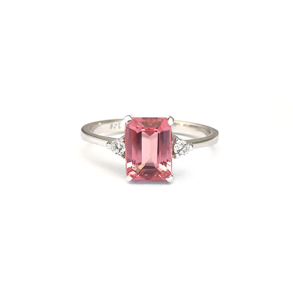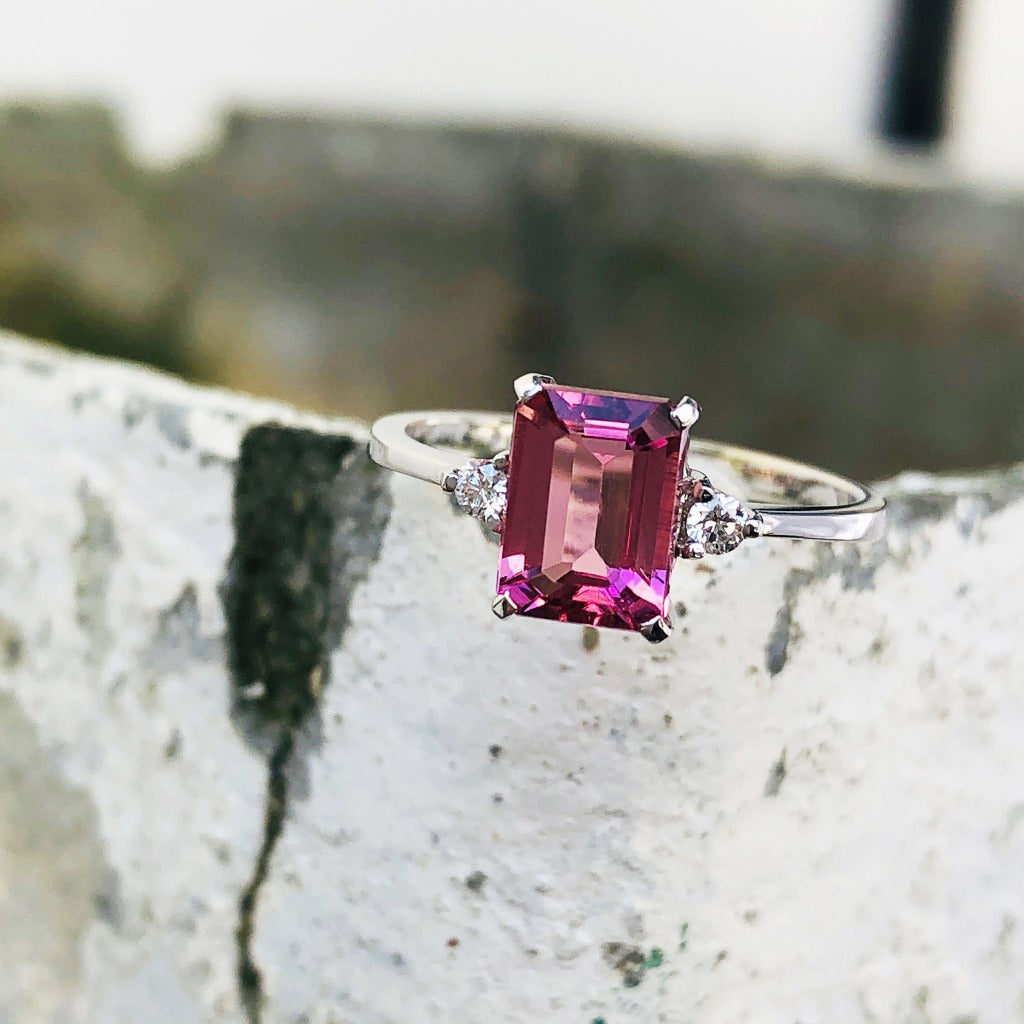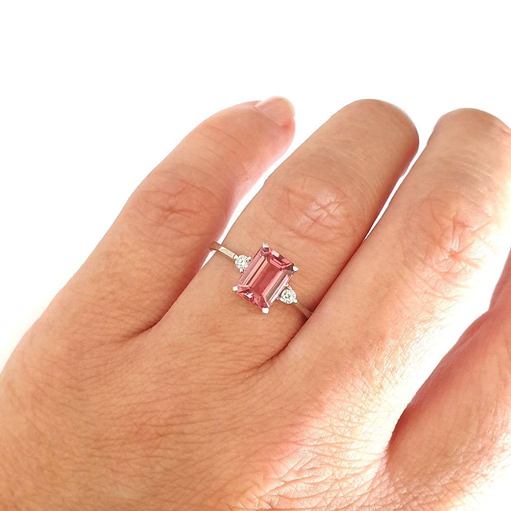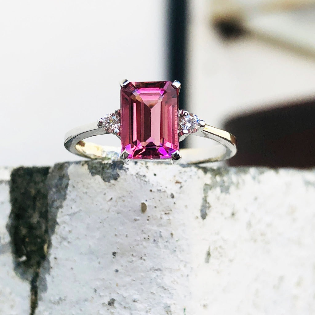 Pink Emerald Cut Tourmaline with petite Diamond Accent