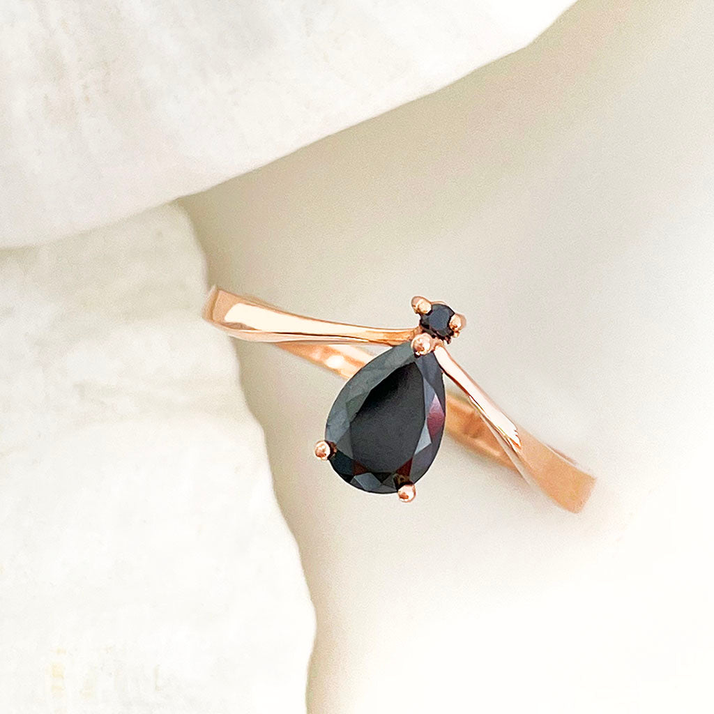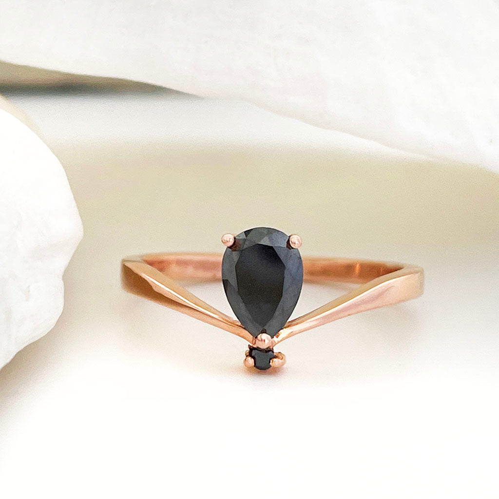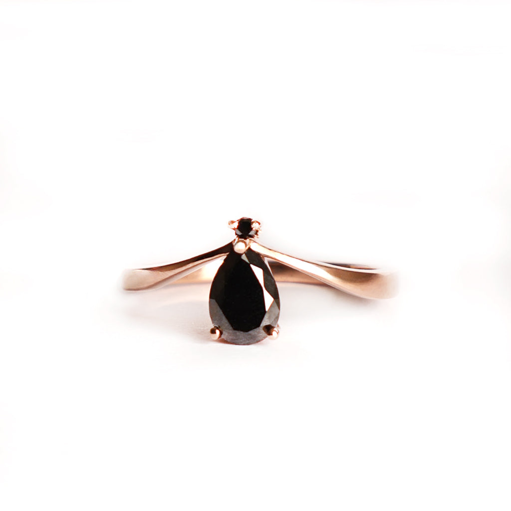 Princess Crown Vibes Pear Cut Black Diamond with Petite Black Diamond Accent Ring