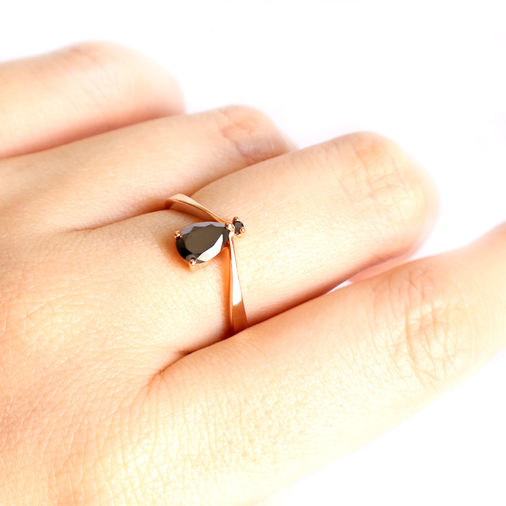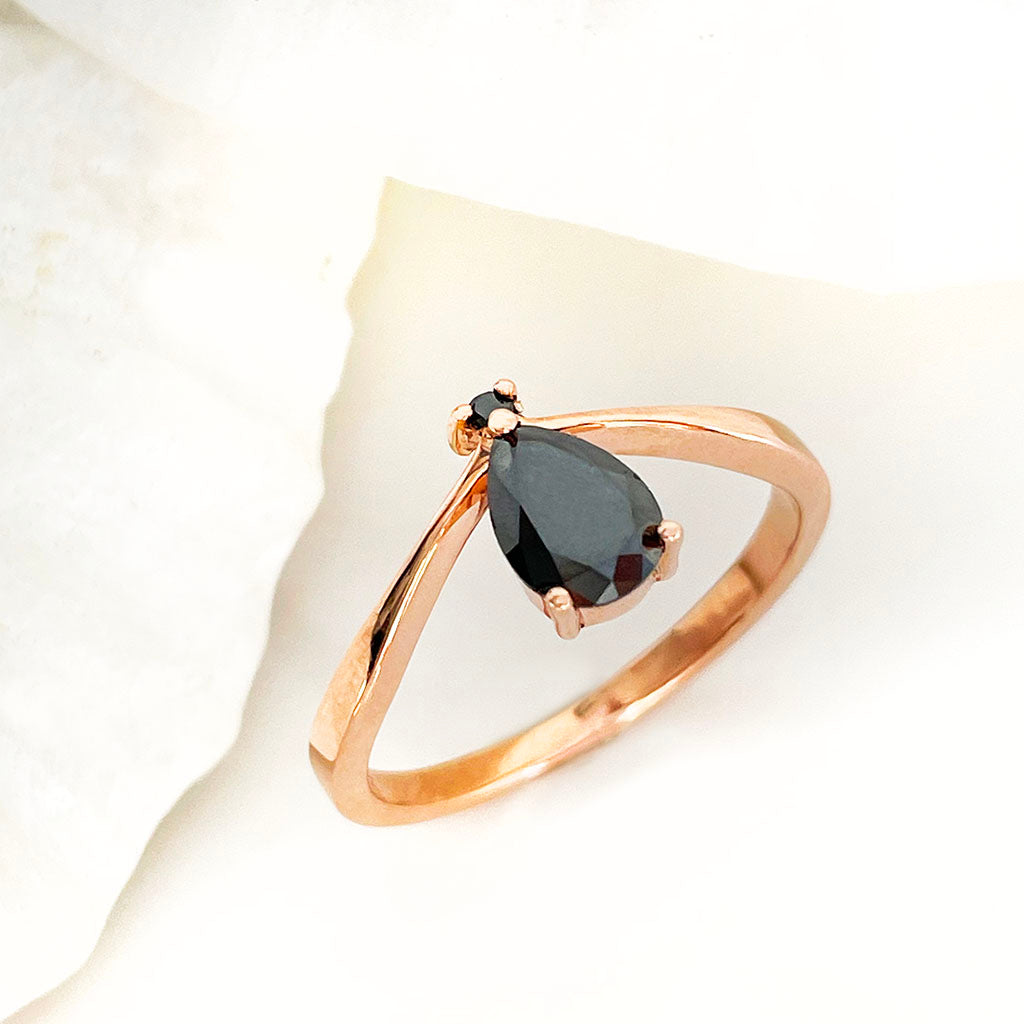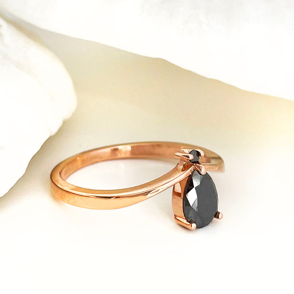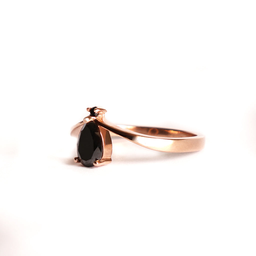 Princess Crown Vibes Pear Cut Black Diamond with Petite Black Diamond Accent Ring