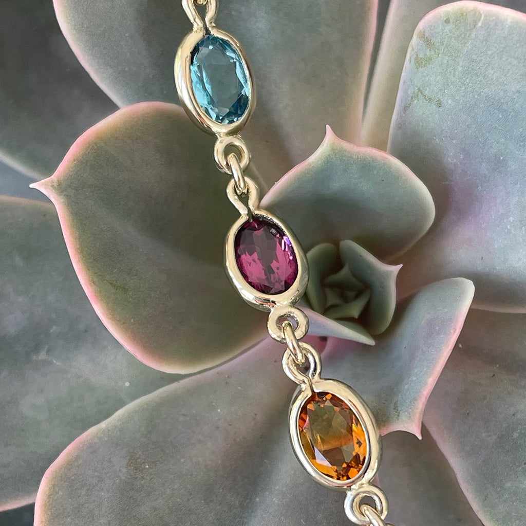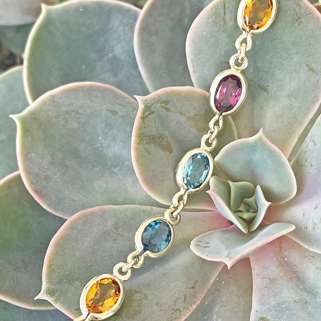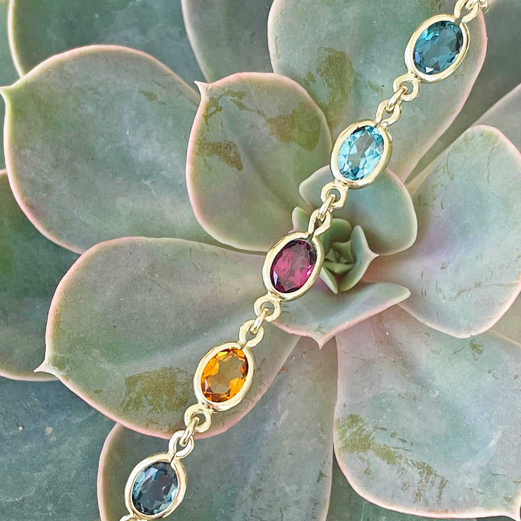 Rainbow Oval Bezel Set Bracelet Yellow Gold