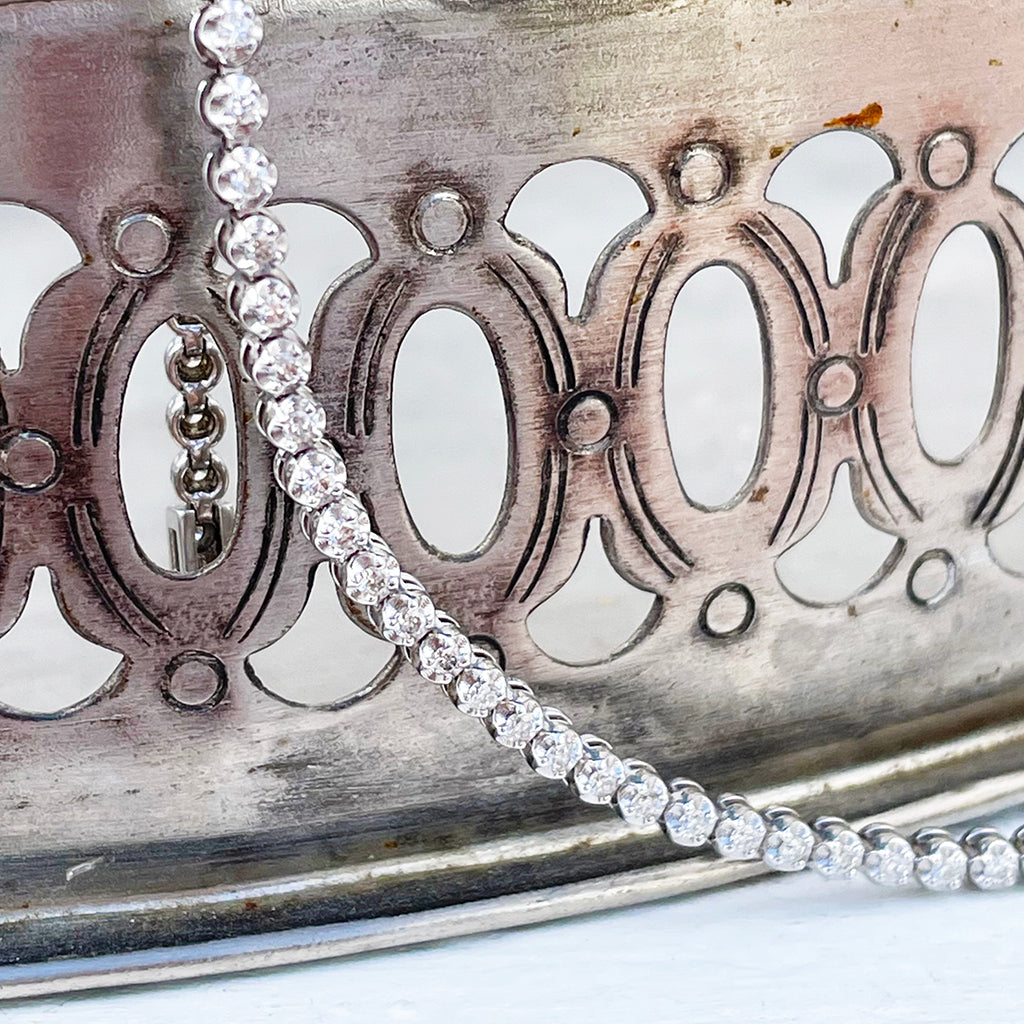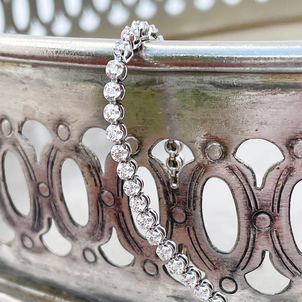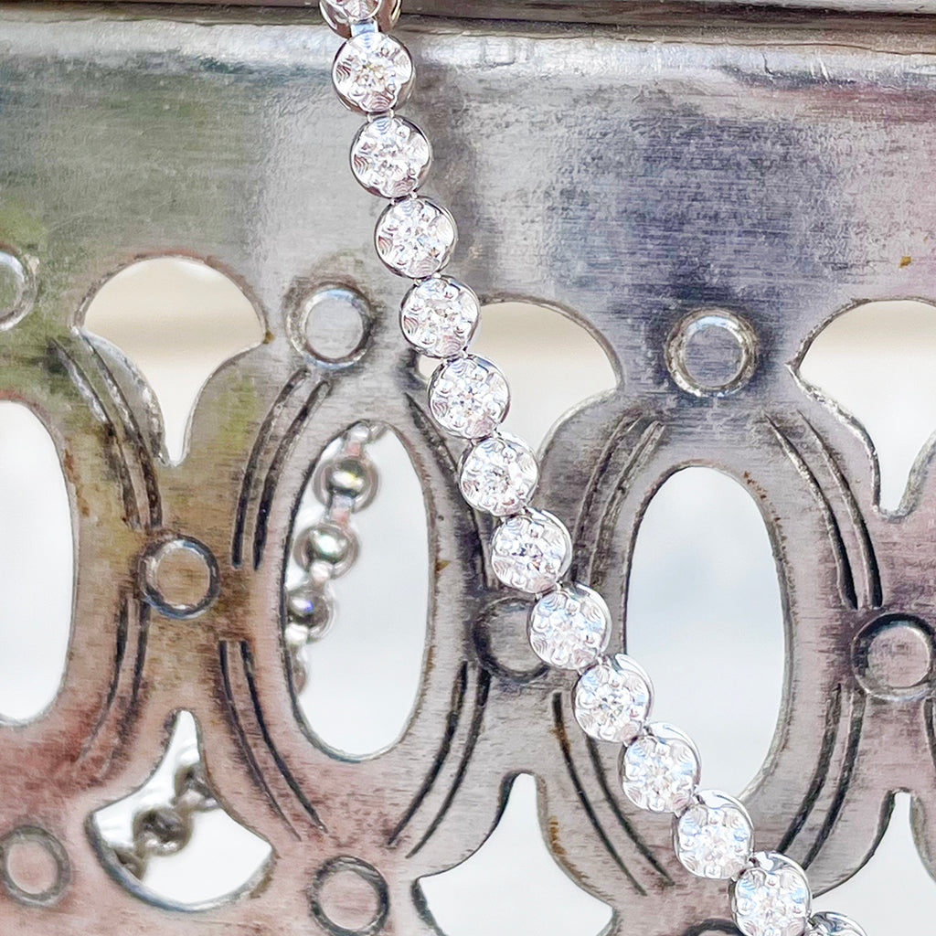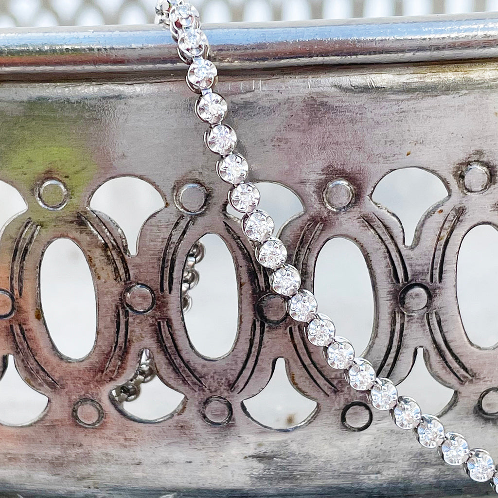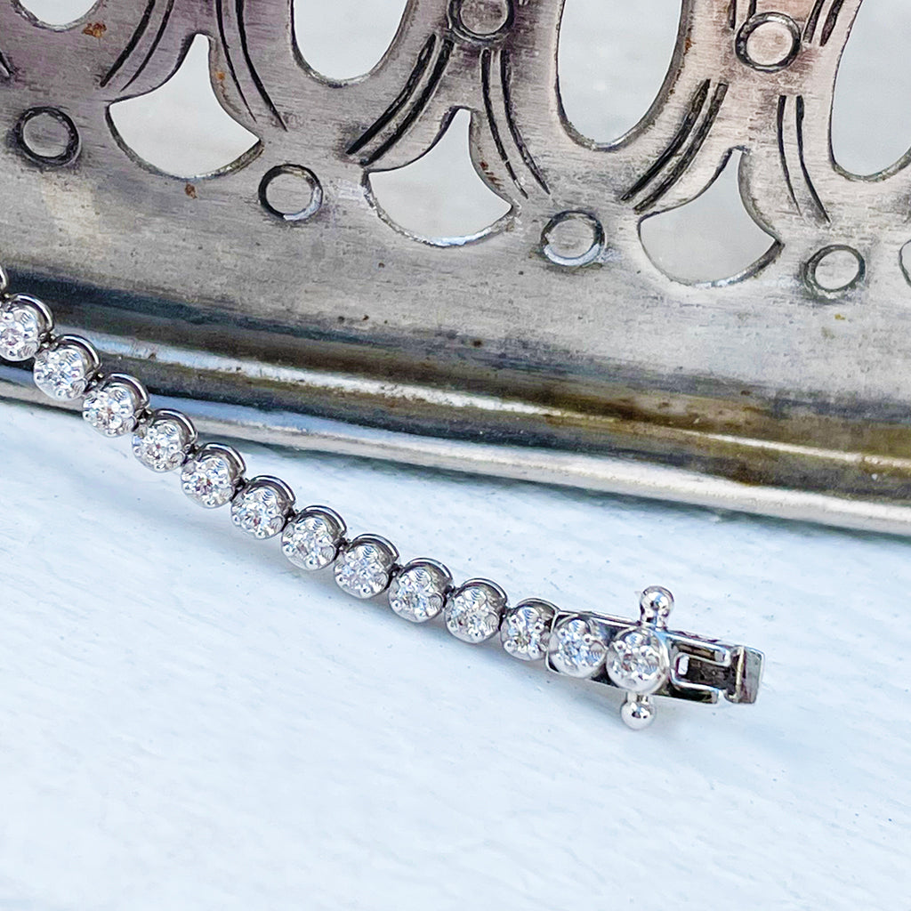 Raised Four Claw 1ct White Diamond White Gold Tennis Bracelet