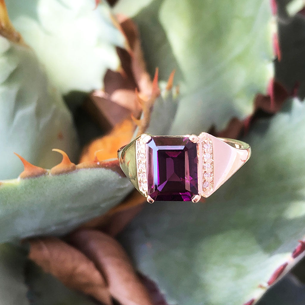 Regal Grape Garnet and Diamond Yellow Gold Ring