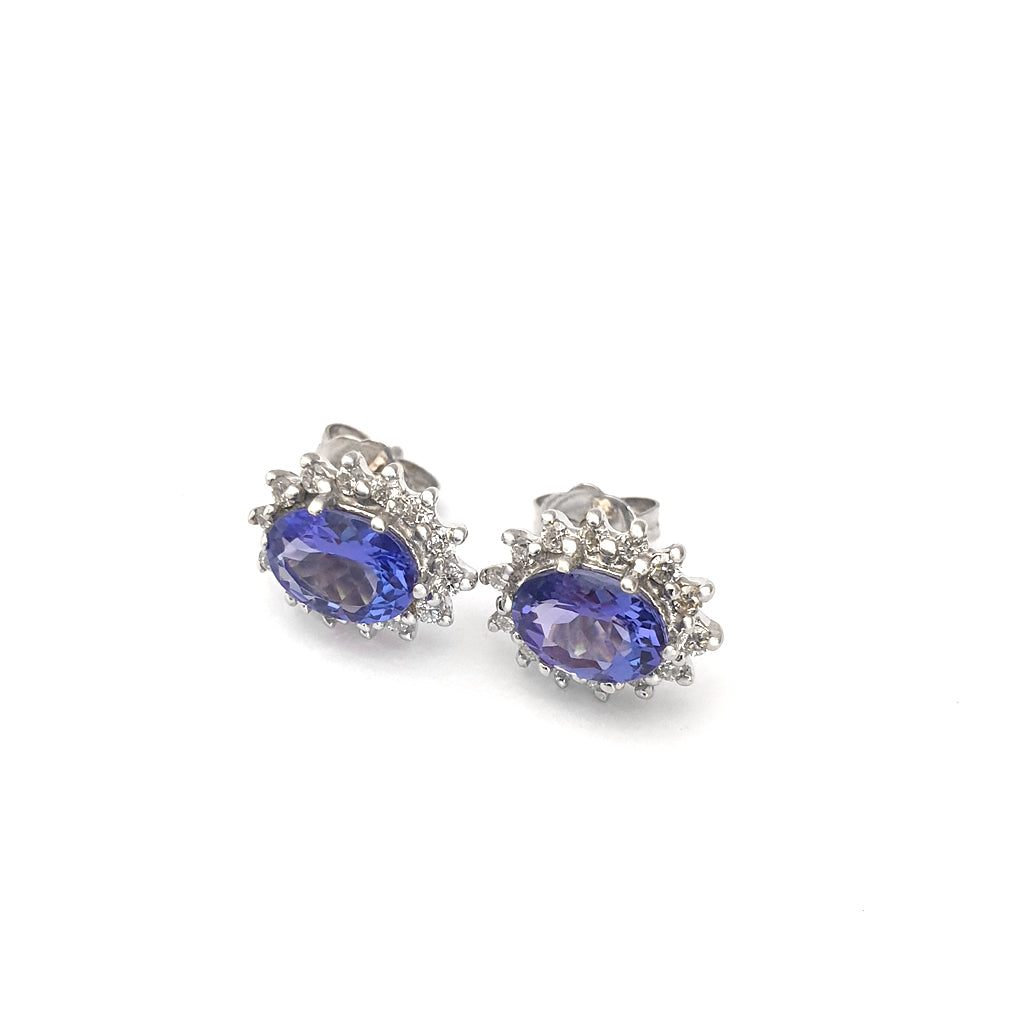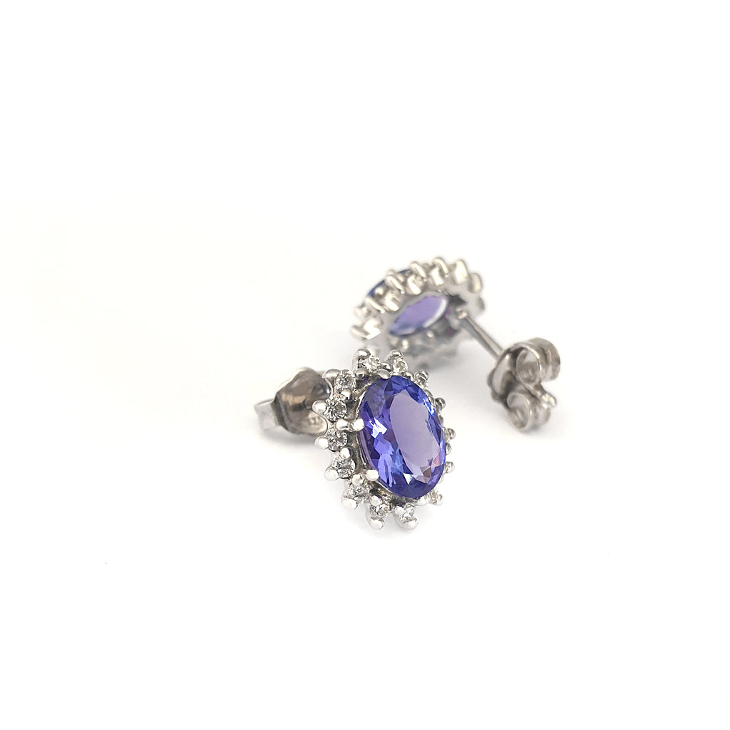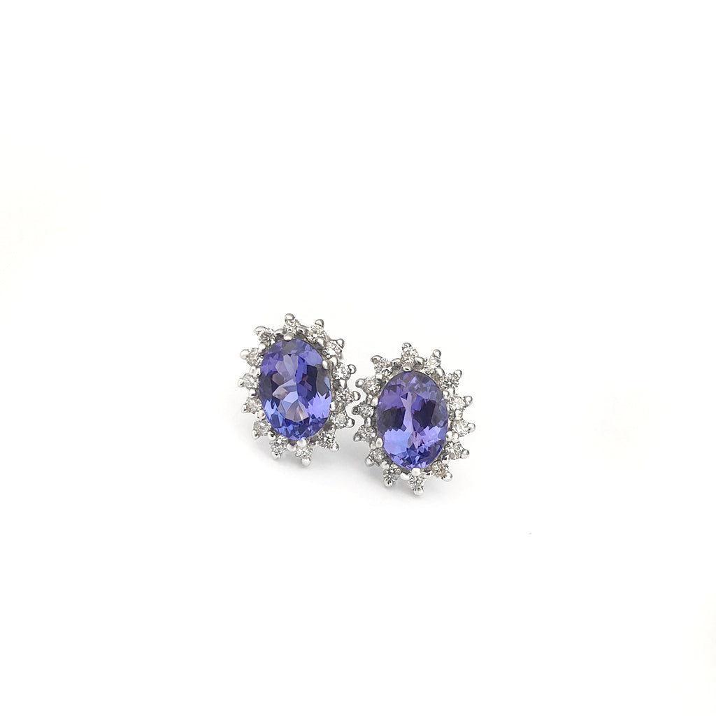 Regal Oval Diamond Halo Tanzanite White Gold Studs