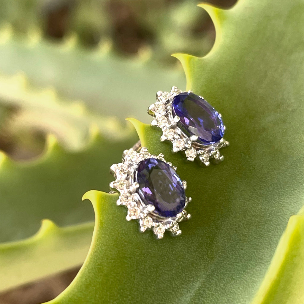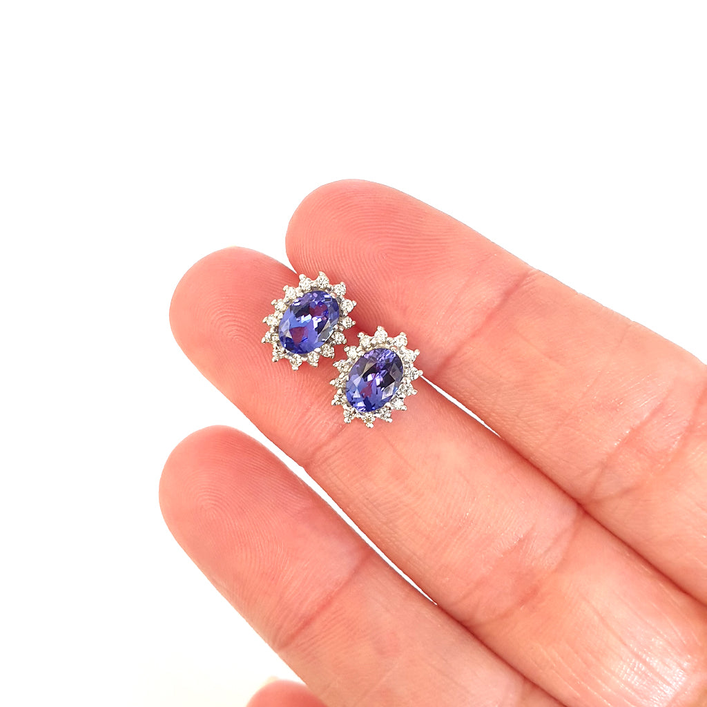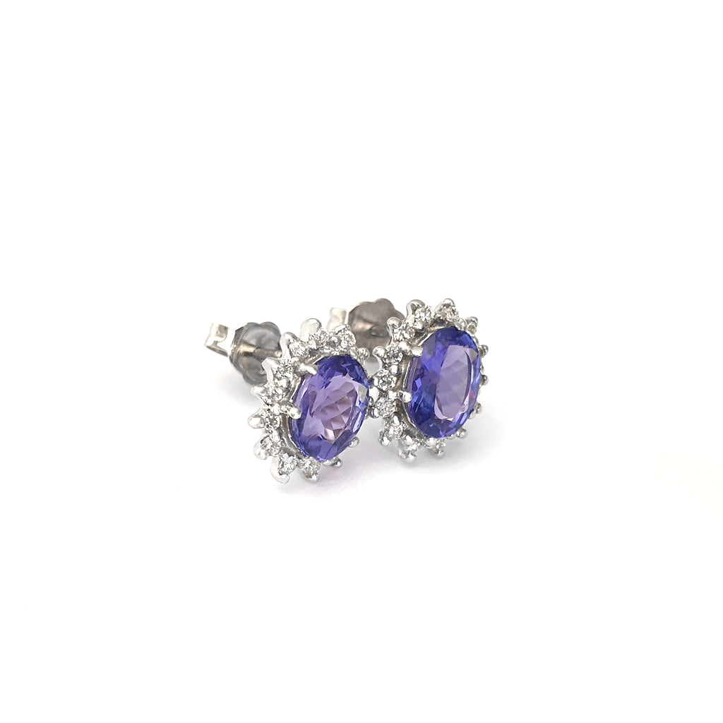 Regal Oval Diamond Halo Tanzanite White Gold Studs
