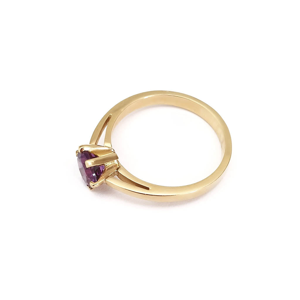 Regal Six Claw Round Cut Amethyst Yellow Gold Ring