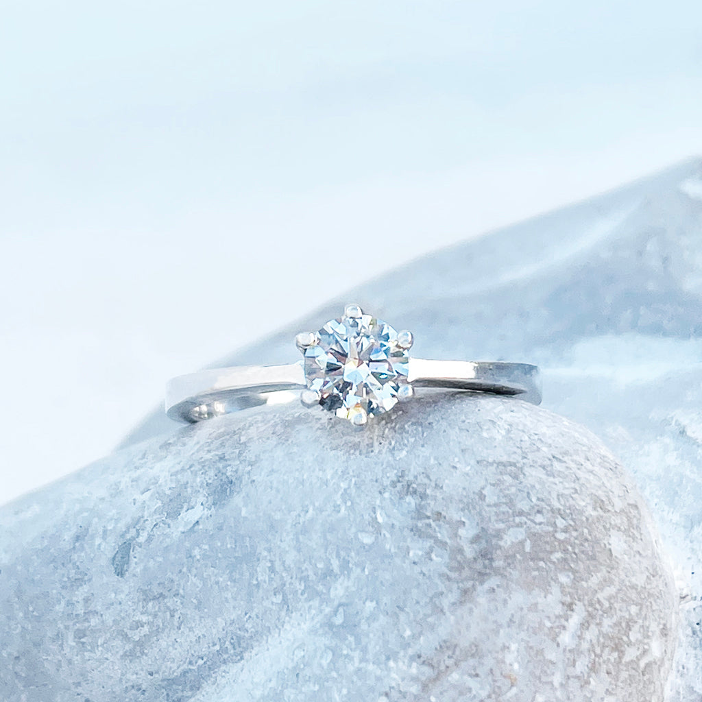Regal Six Claw Round Cut Diamond White Gold Ring