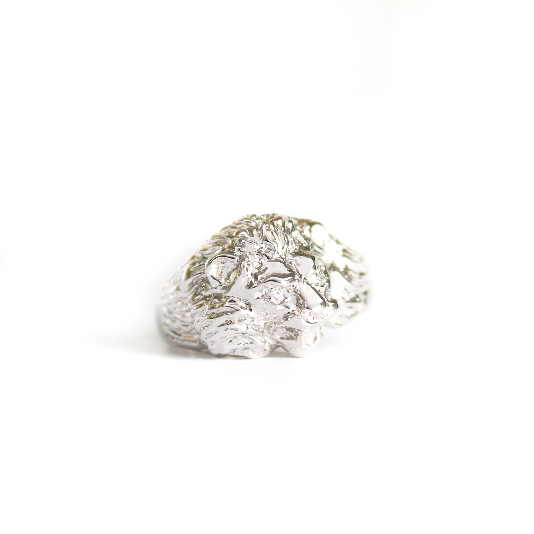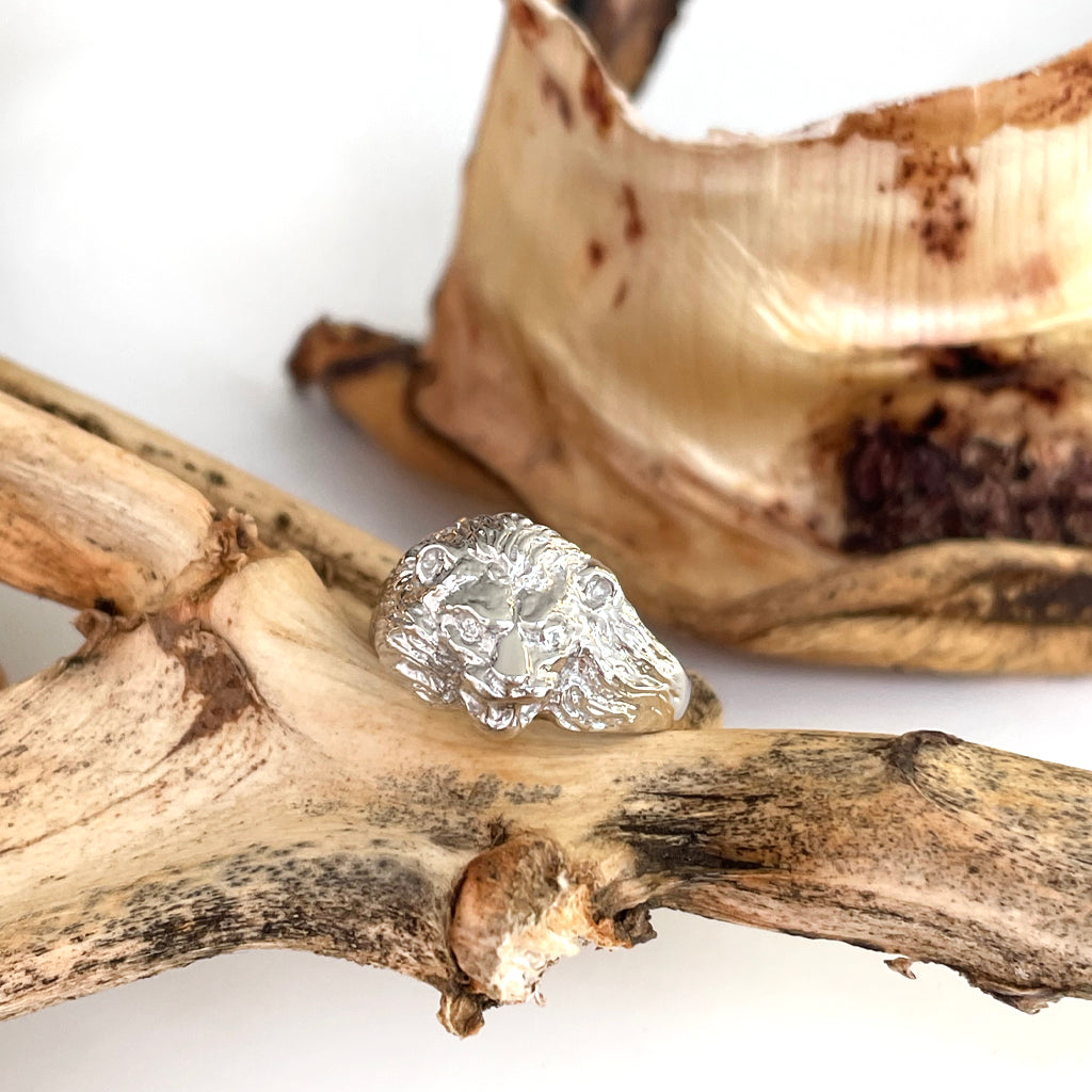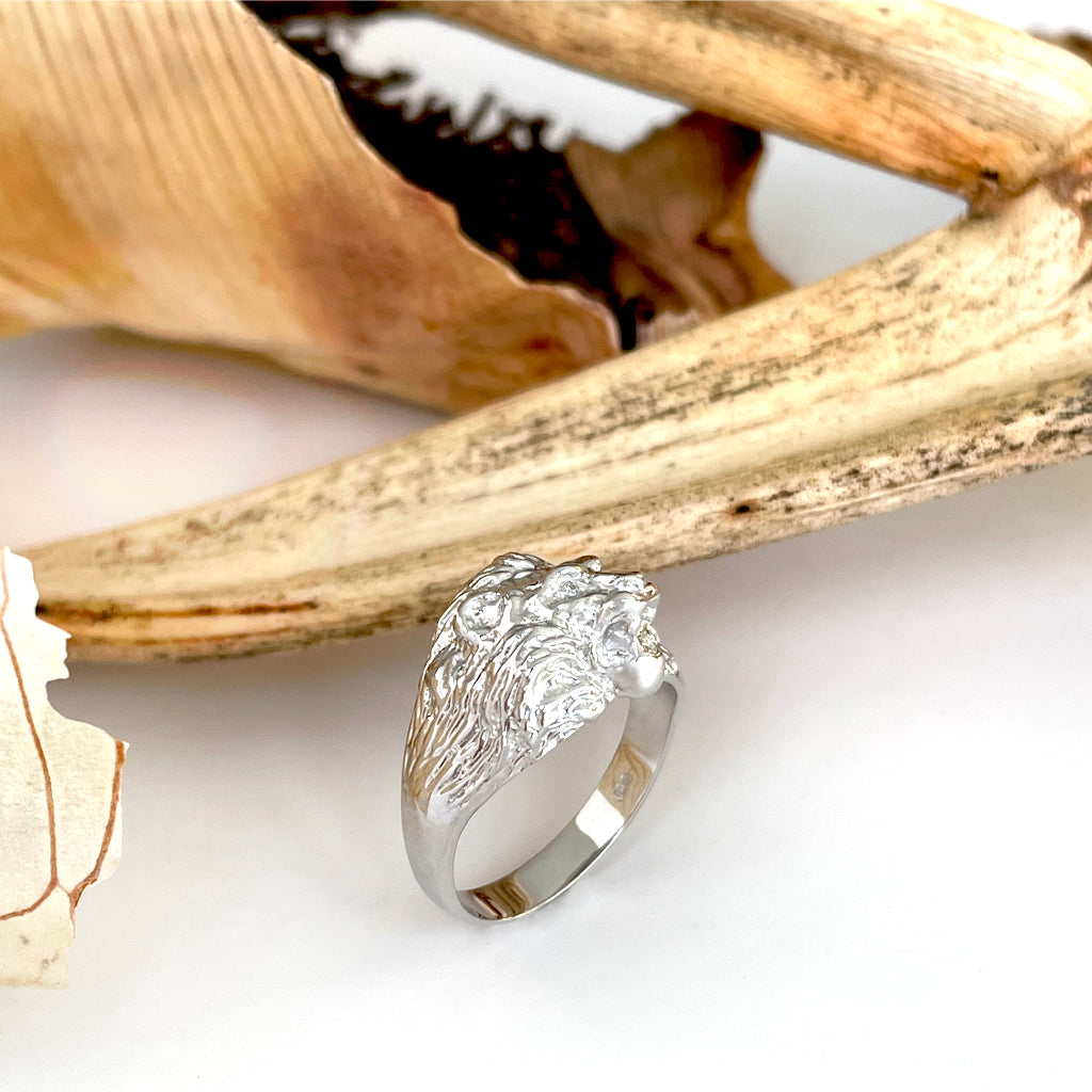 Roaring Lion with Diamond Accents in White Gold Ring
