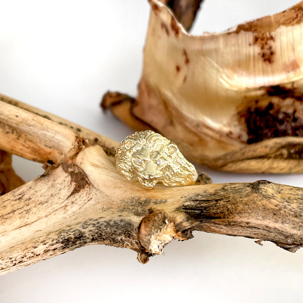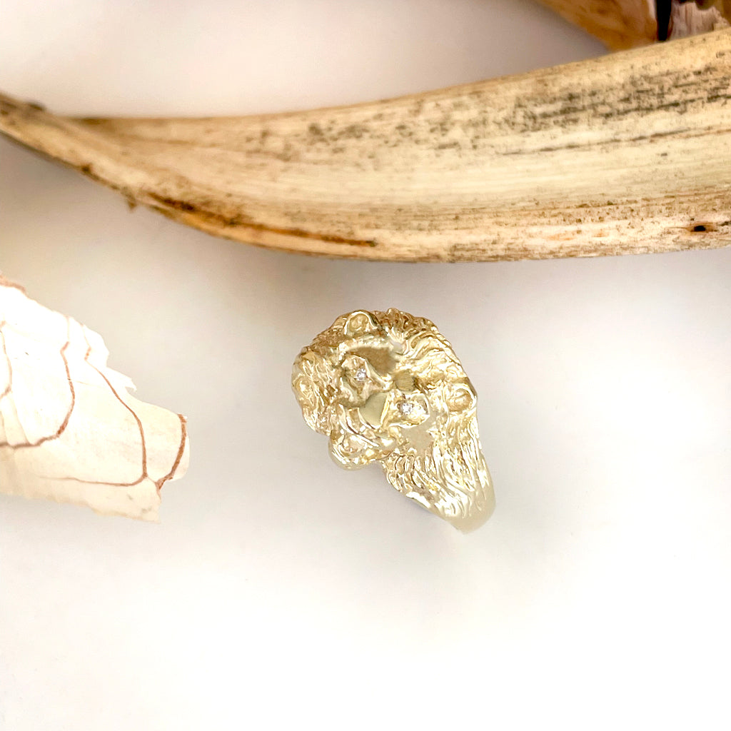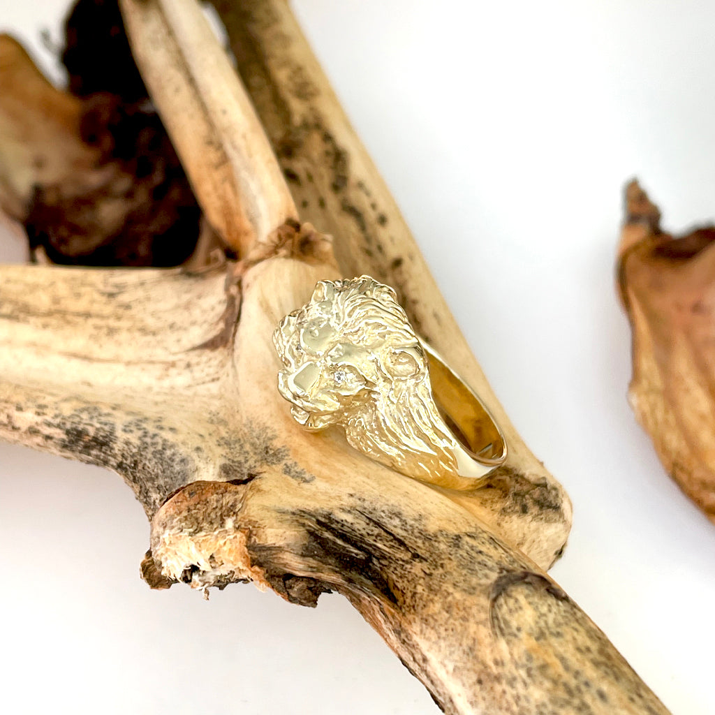 Roaring Lion with Diamond Accents in Yellow Gold Ring
