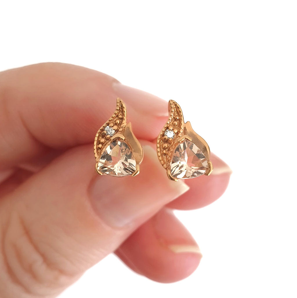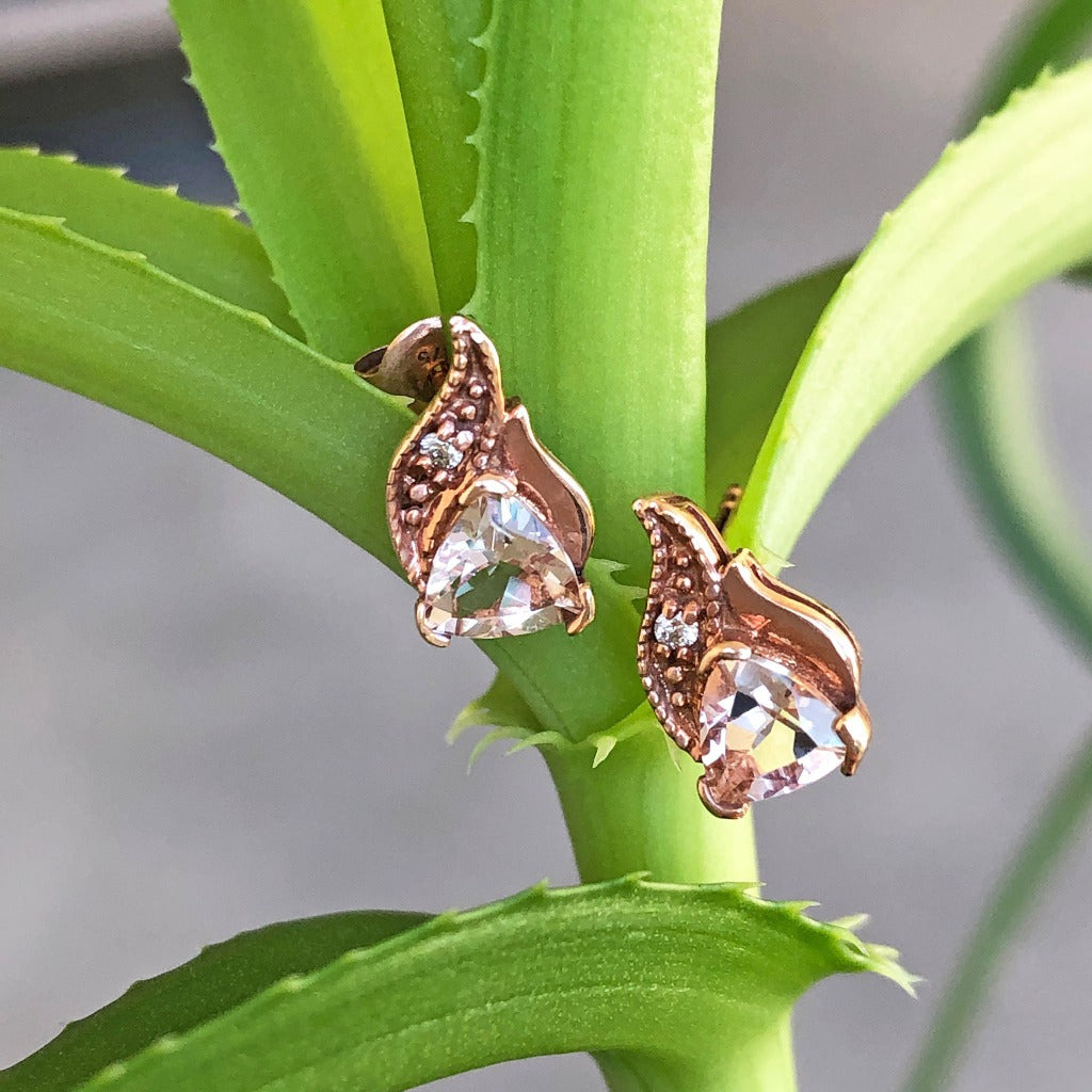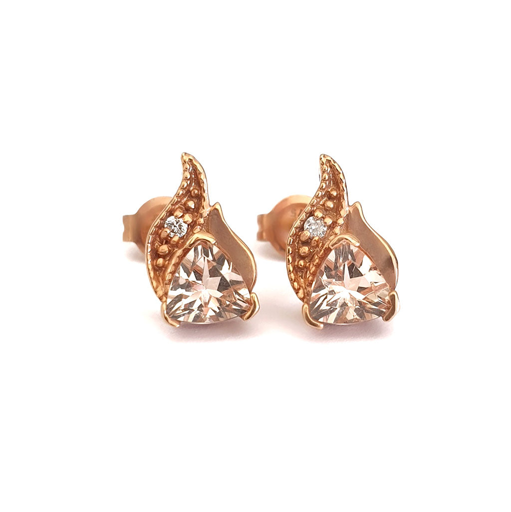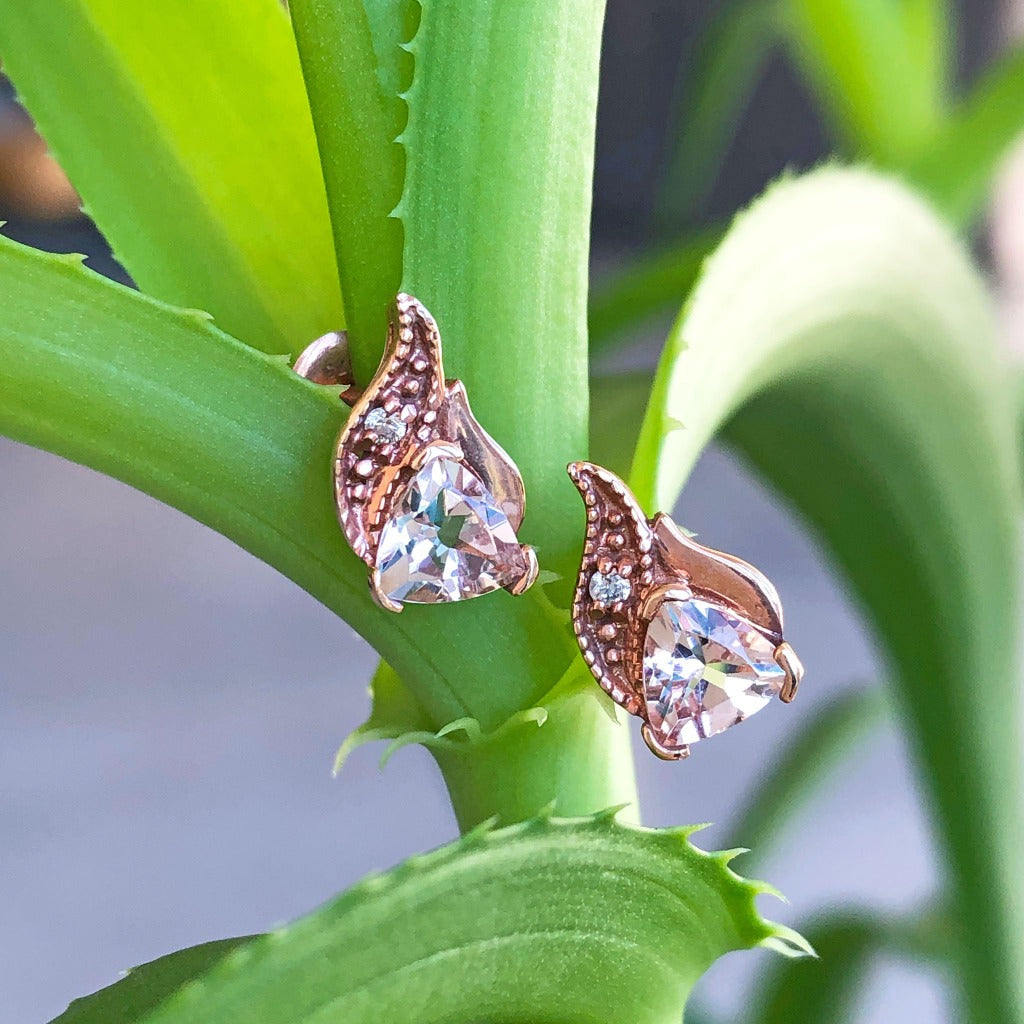 Rose Gold Morganite Trilliant and Diamond Earrings
