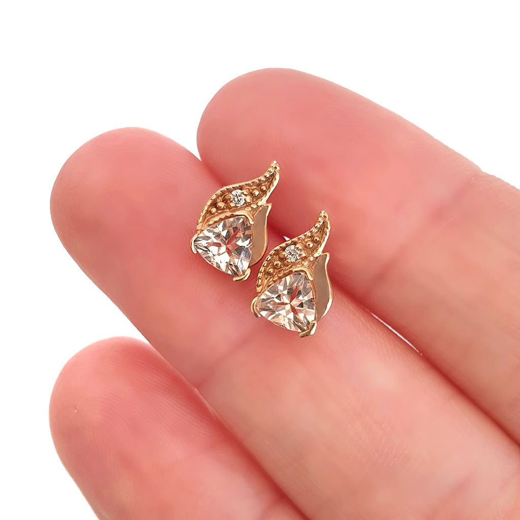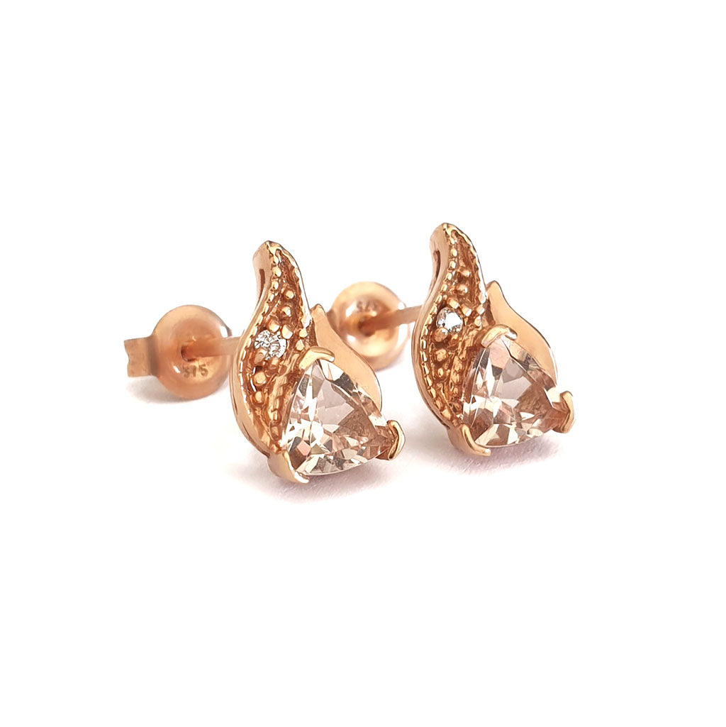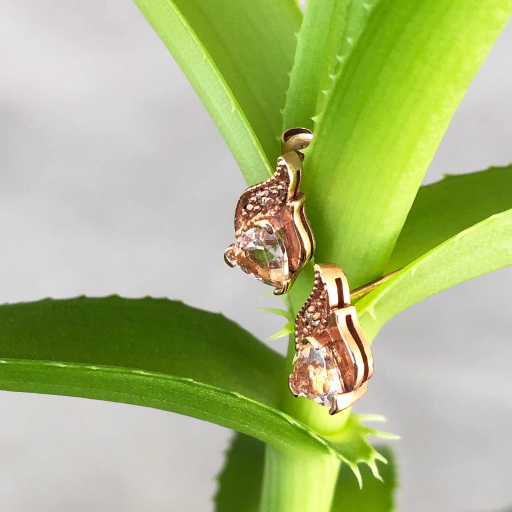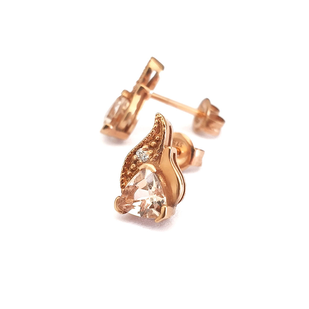 Rose Gold Morganite Trilliant and Diamond Earrings
