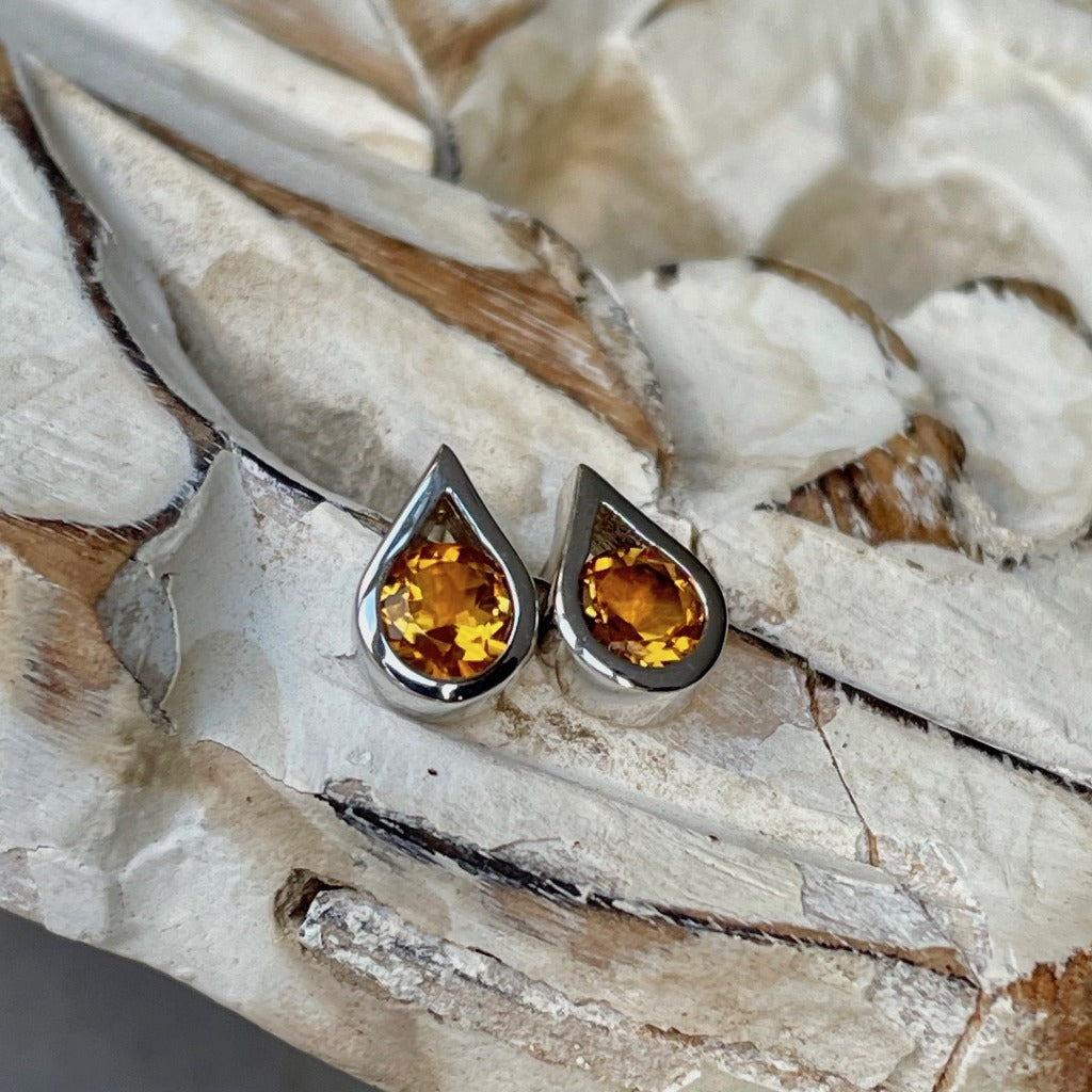 Round-cut citrines are set into the contemporary curve of a teardrop design in these sublime earrings. Harnesses the glowing beauty of citrine and the polished gleam of nine-carat white gold to exquisite effect, these earrings add a subtle, yet daring sexiness to any outfit.