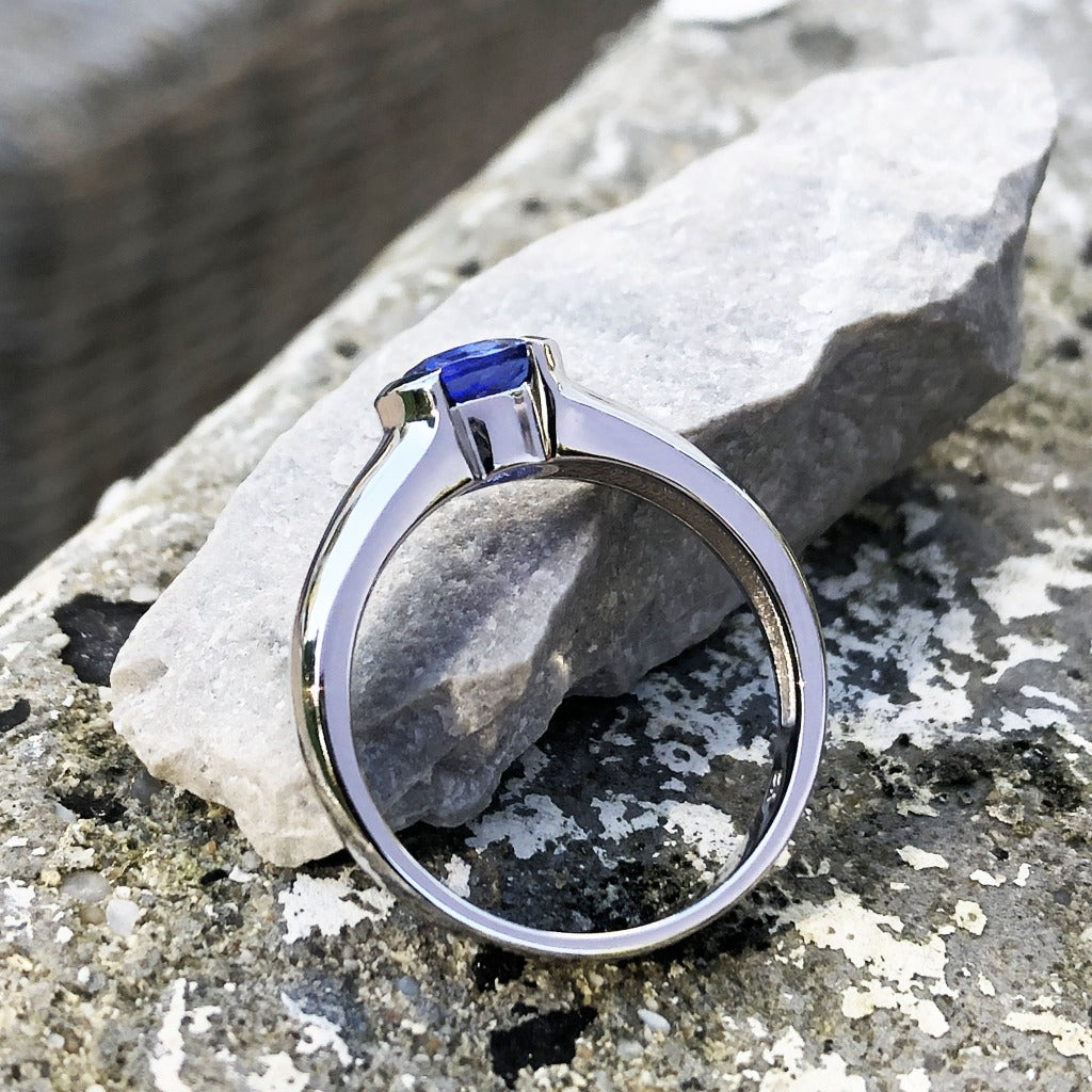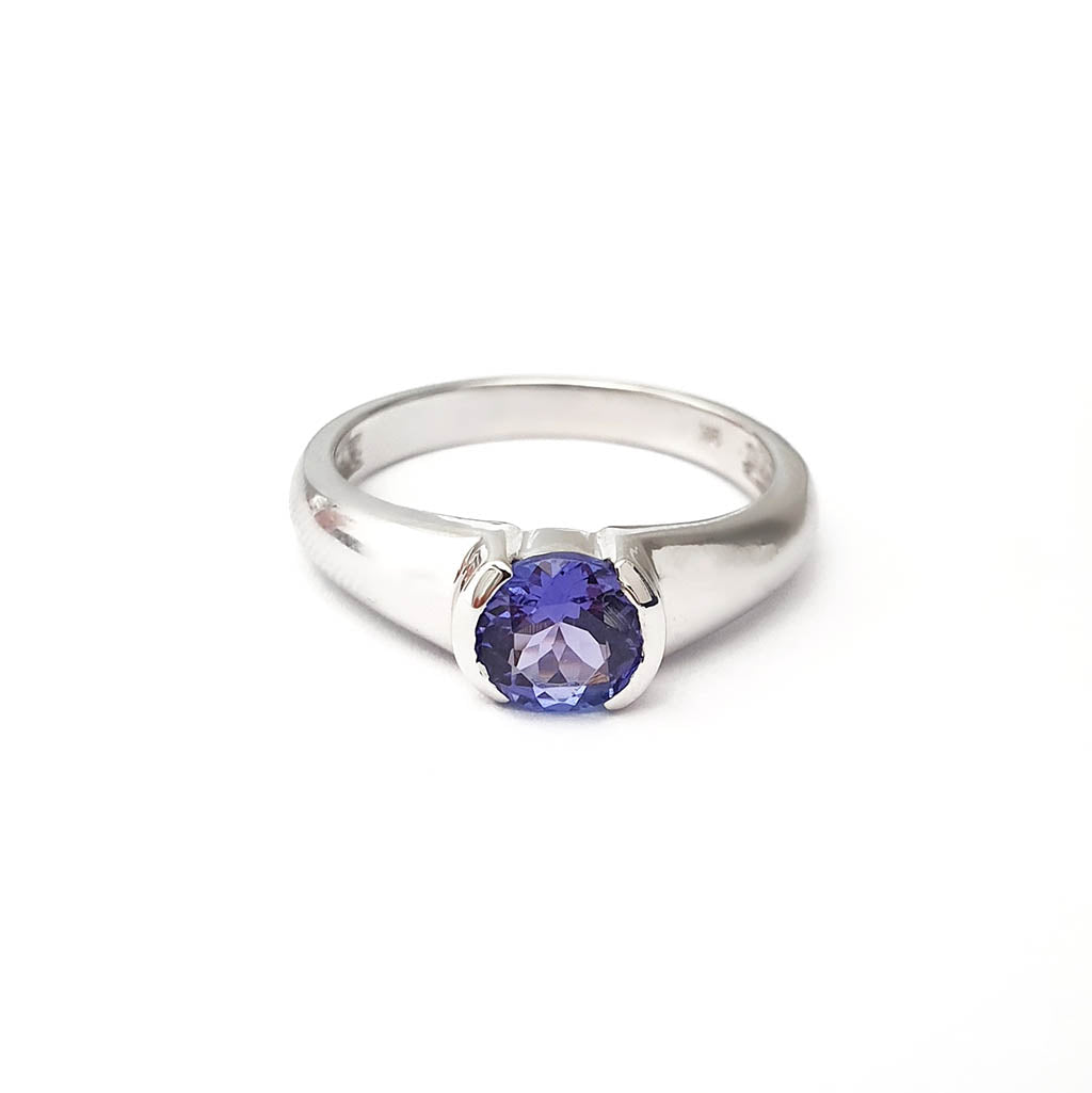 Contemporary Tanzanite Solitaire Ring in a Half Tube Setting