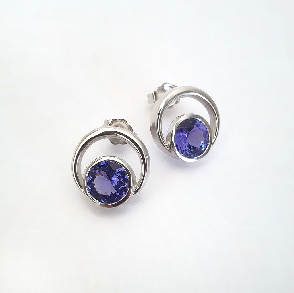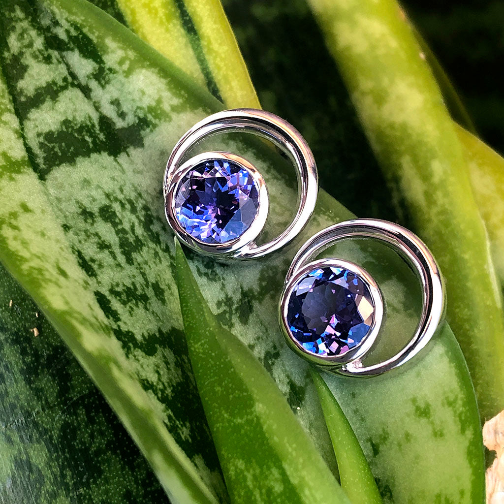 Double Tube Set Round Cut Tanzanite Earrings
