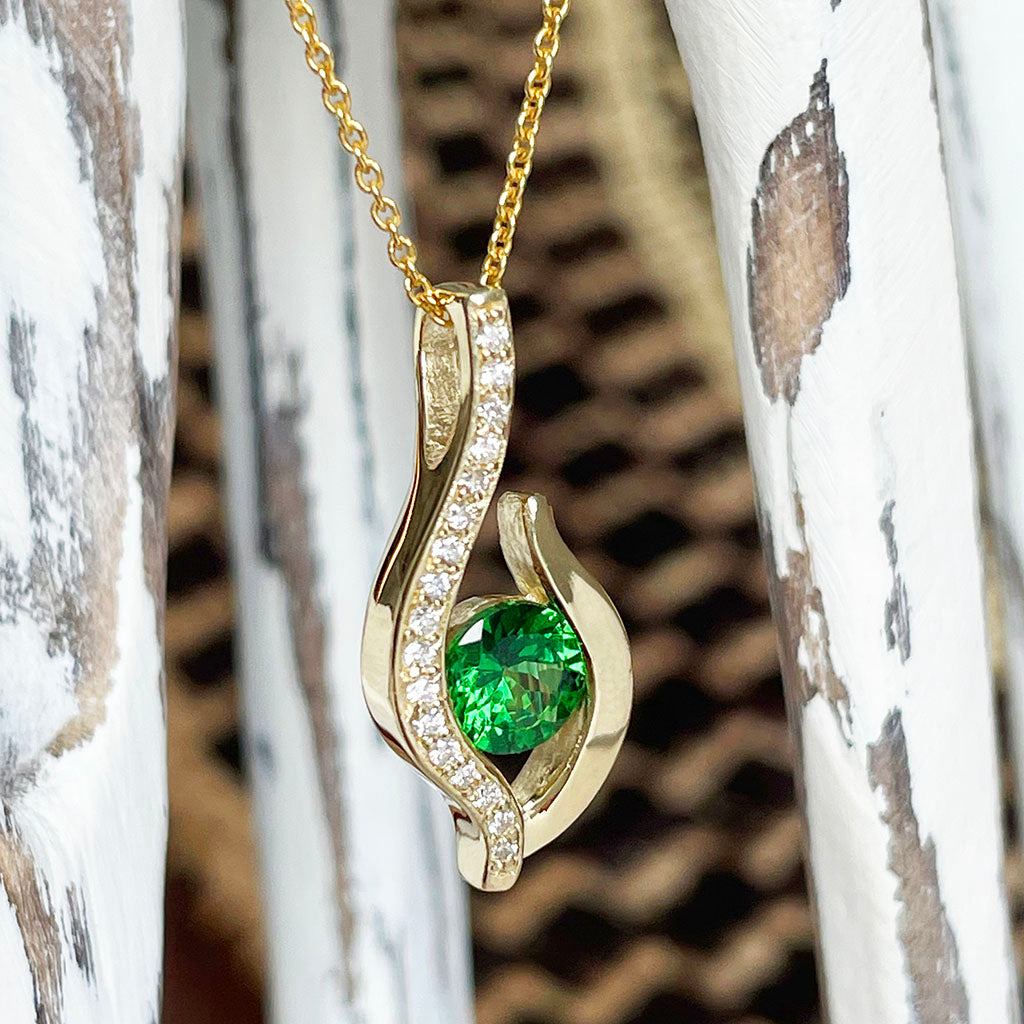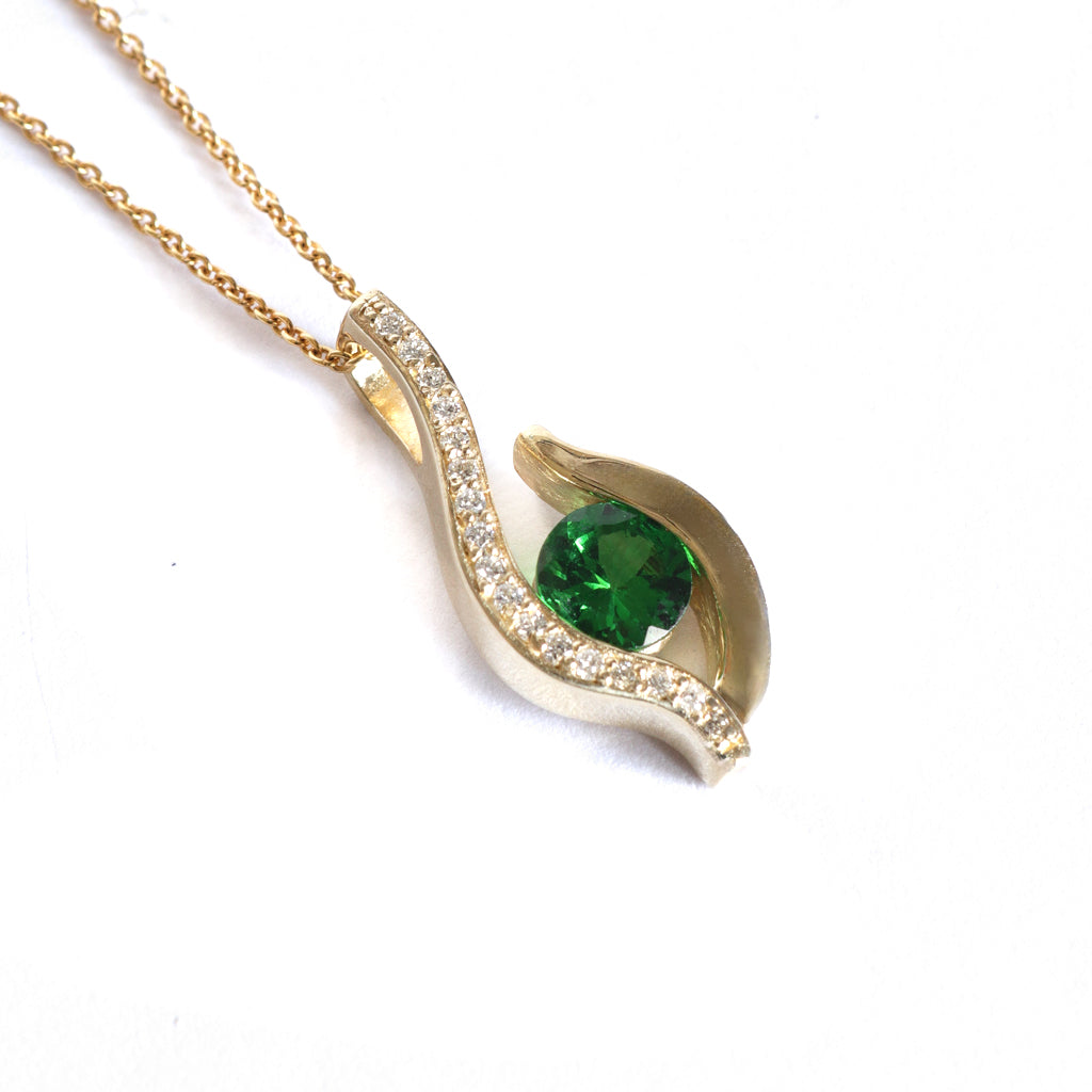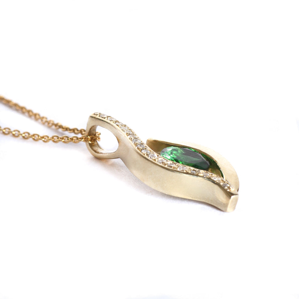 Sensual Tsavorite and Diamond Pave Yellow Gold Pendant