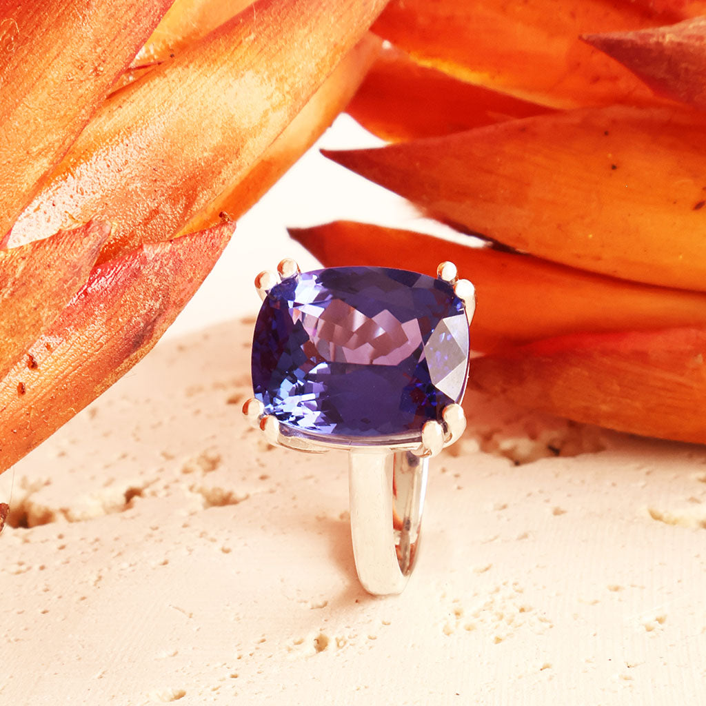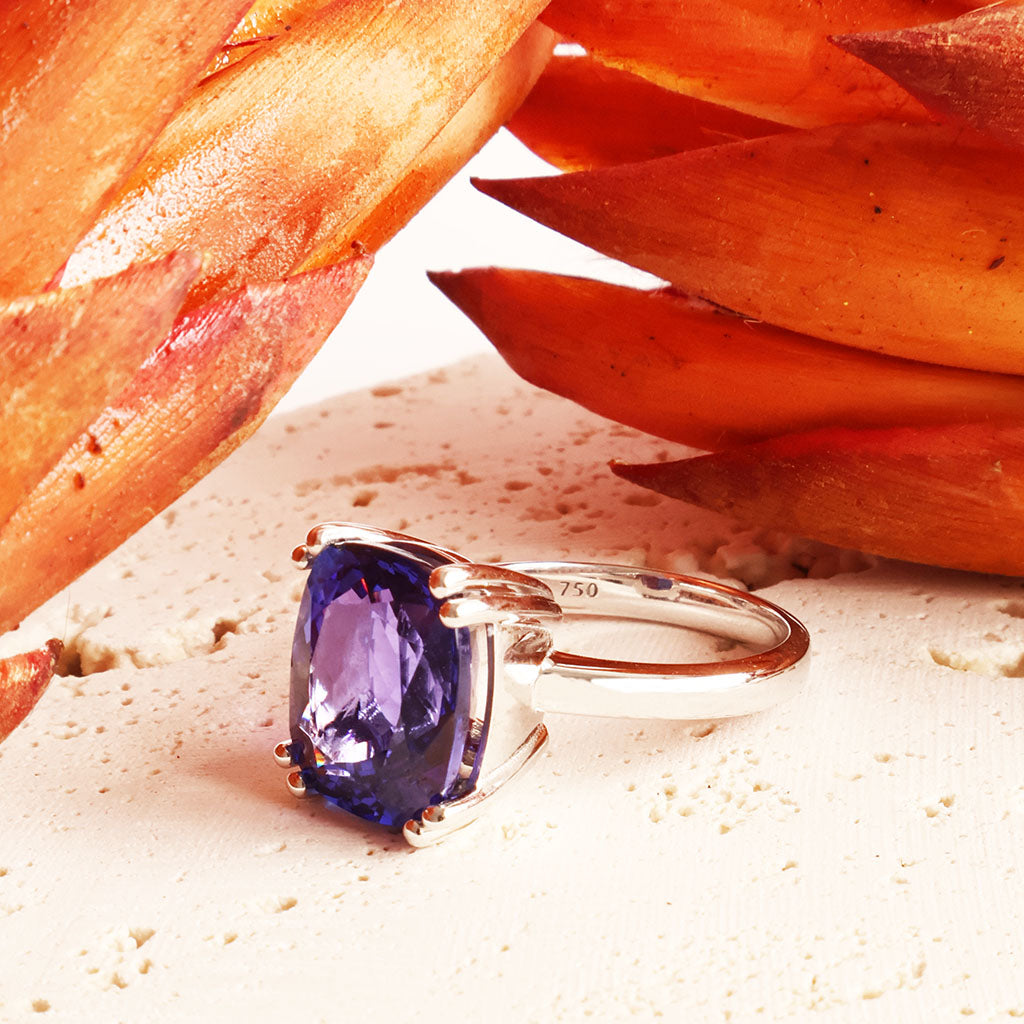 Show-stopping Elongated Cushion Cut Tanzanite 18ct White Gold Ring
