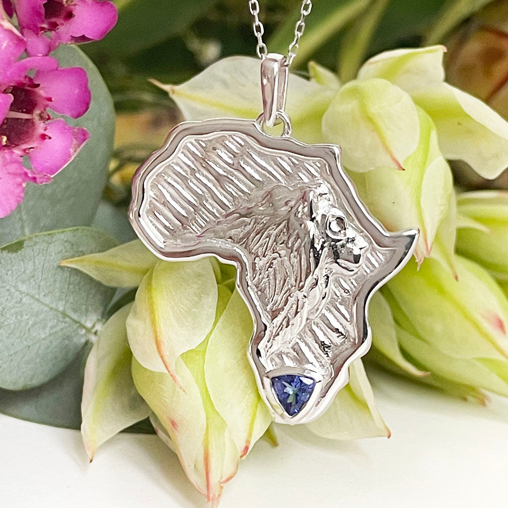 Silver Africa Lion Tanzanite With Trilliant Tanzanite Accent Pendant