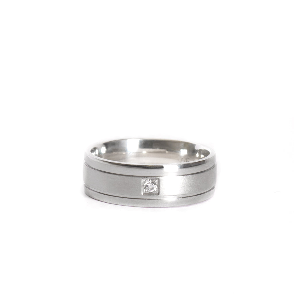Silver Central Matte and Polished Band Solitaire Cubic Zirconia Band