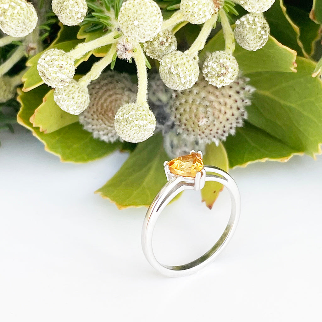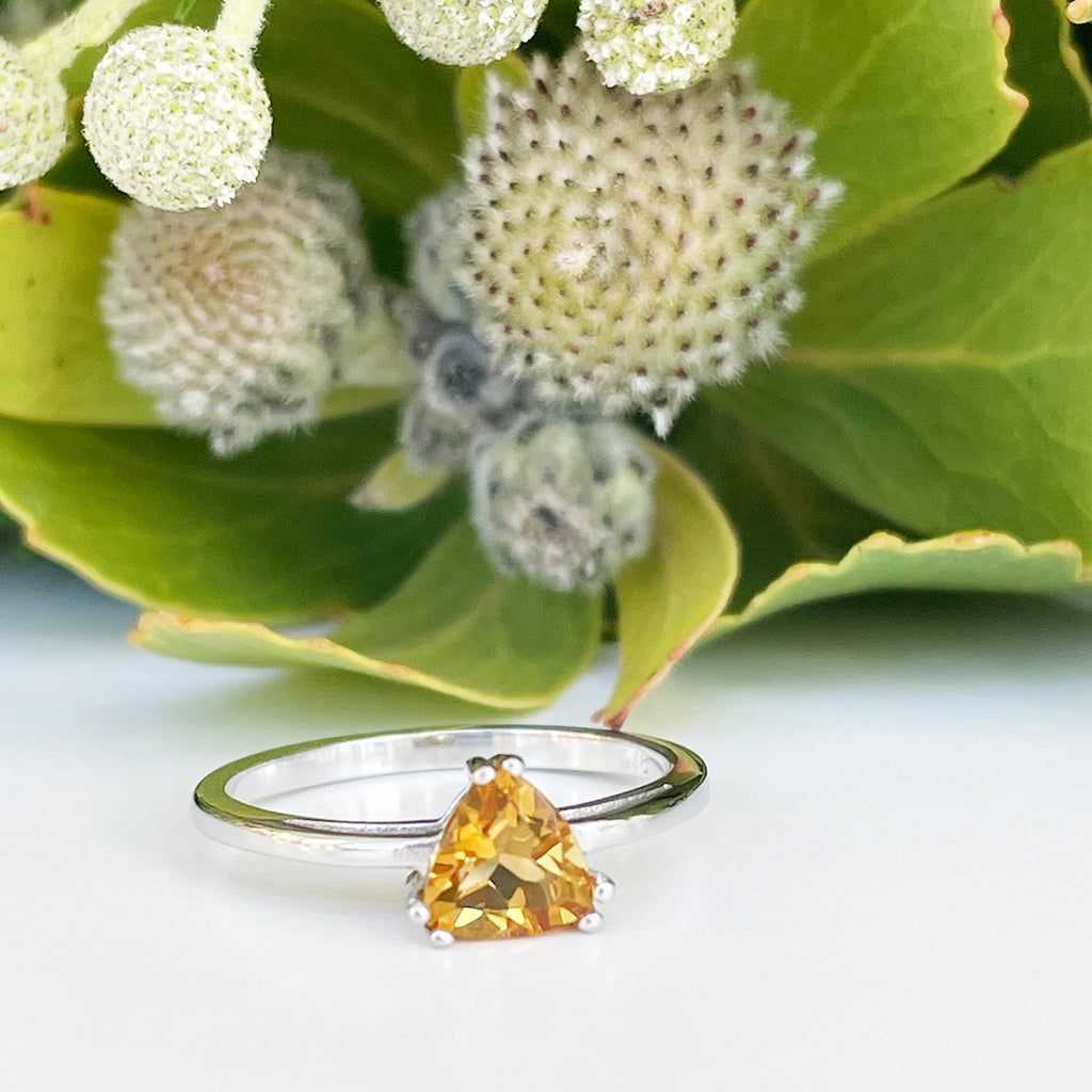 Silver Solitaire Citrine Trilliant Cut Ring