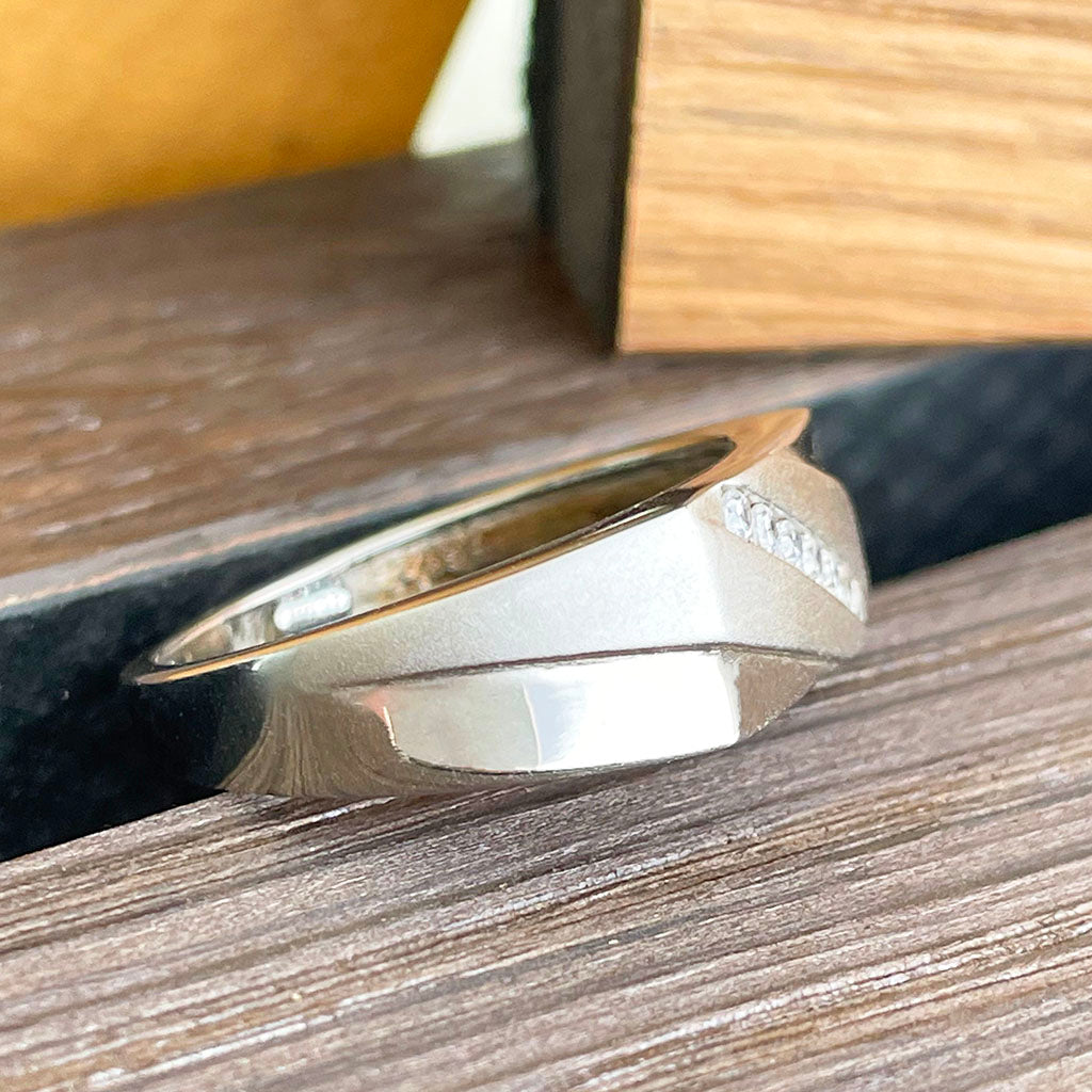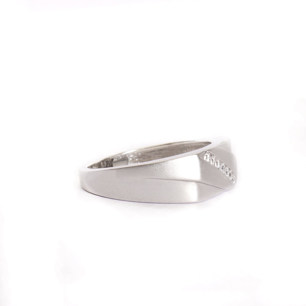 Silver Lucky Seven Diagonally Set Cubic Zirconia Matt Twist Band