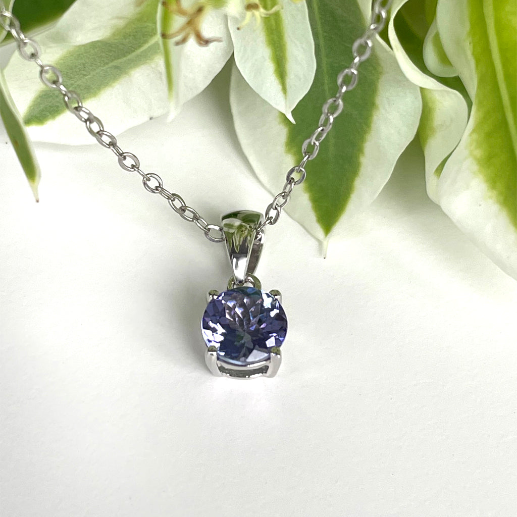 Silver Petite Solitaire Round Cut Tanzanite Pendant