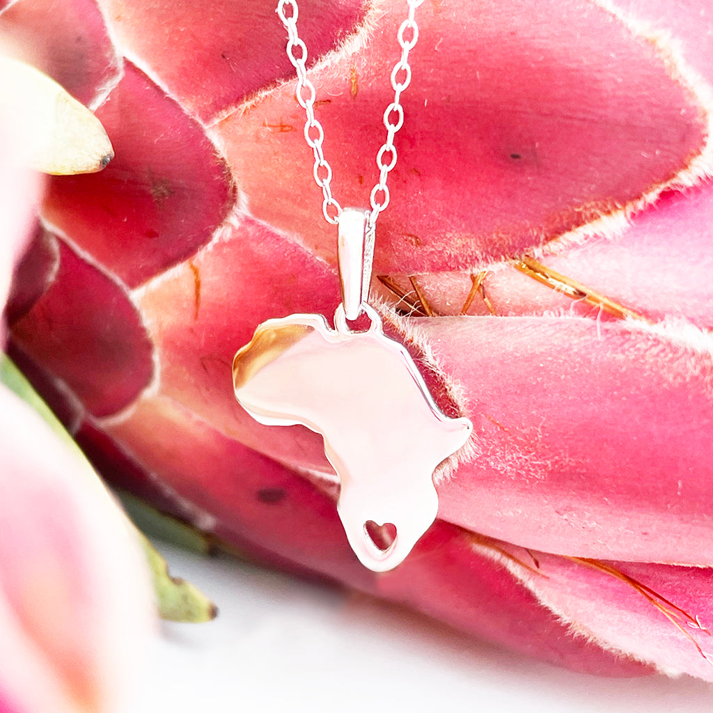 Love the incomprehensible beauty of Africa. Love the uBuntu warmth of her people. Love the melting pot of culture. Love the landscape from Cape Town to Cairo. Love Africa pendant in silver.