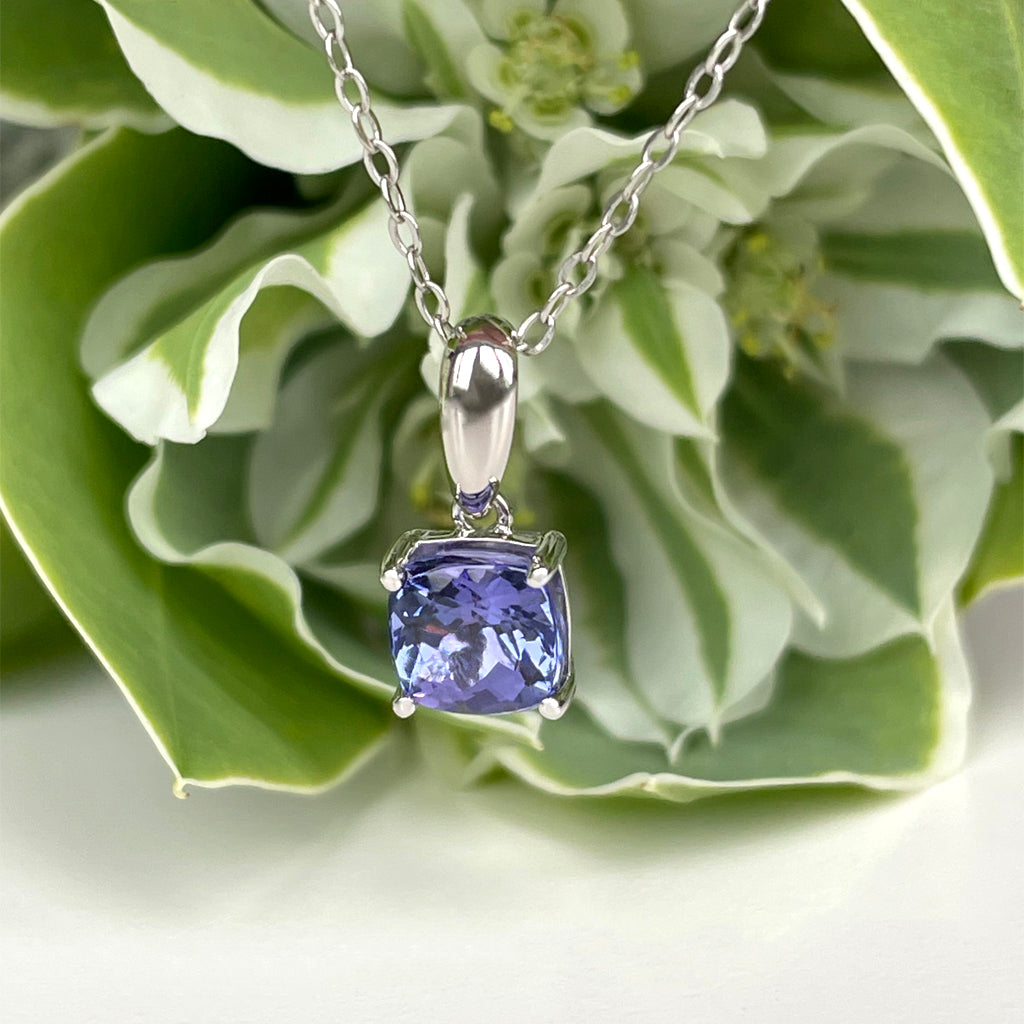 Silver Solitaire Cushion Cut Tanzanite Pendant