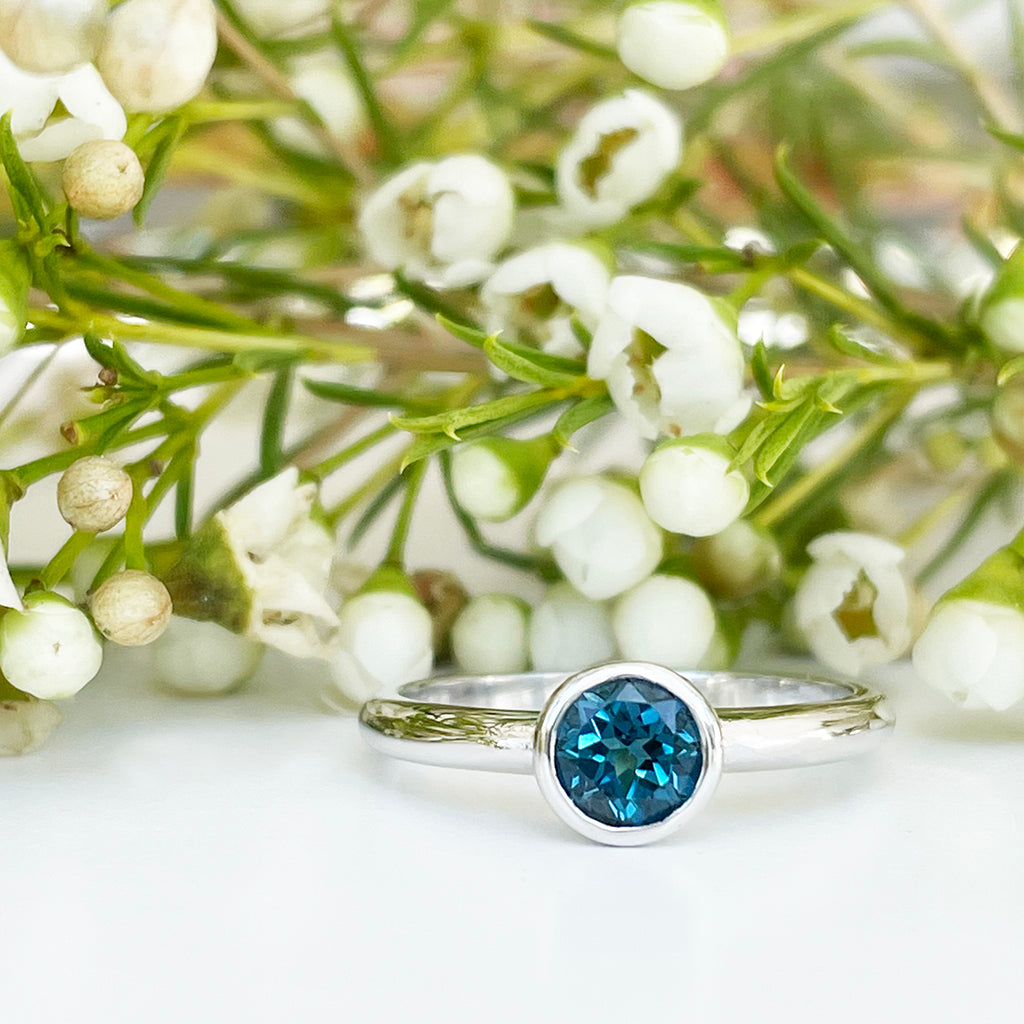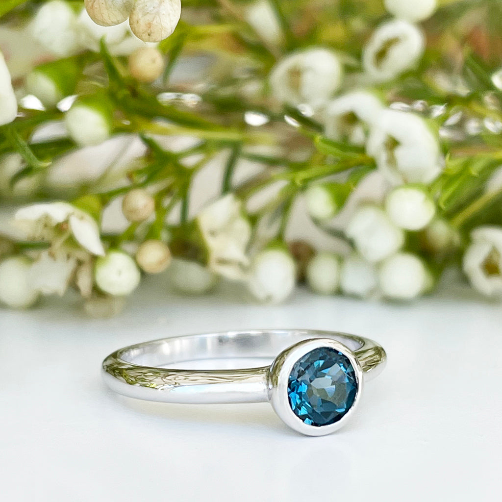 Silver Solitaire Round Tube Set London Blue Topaz Ring